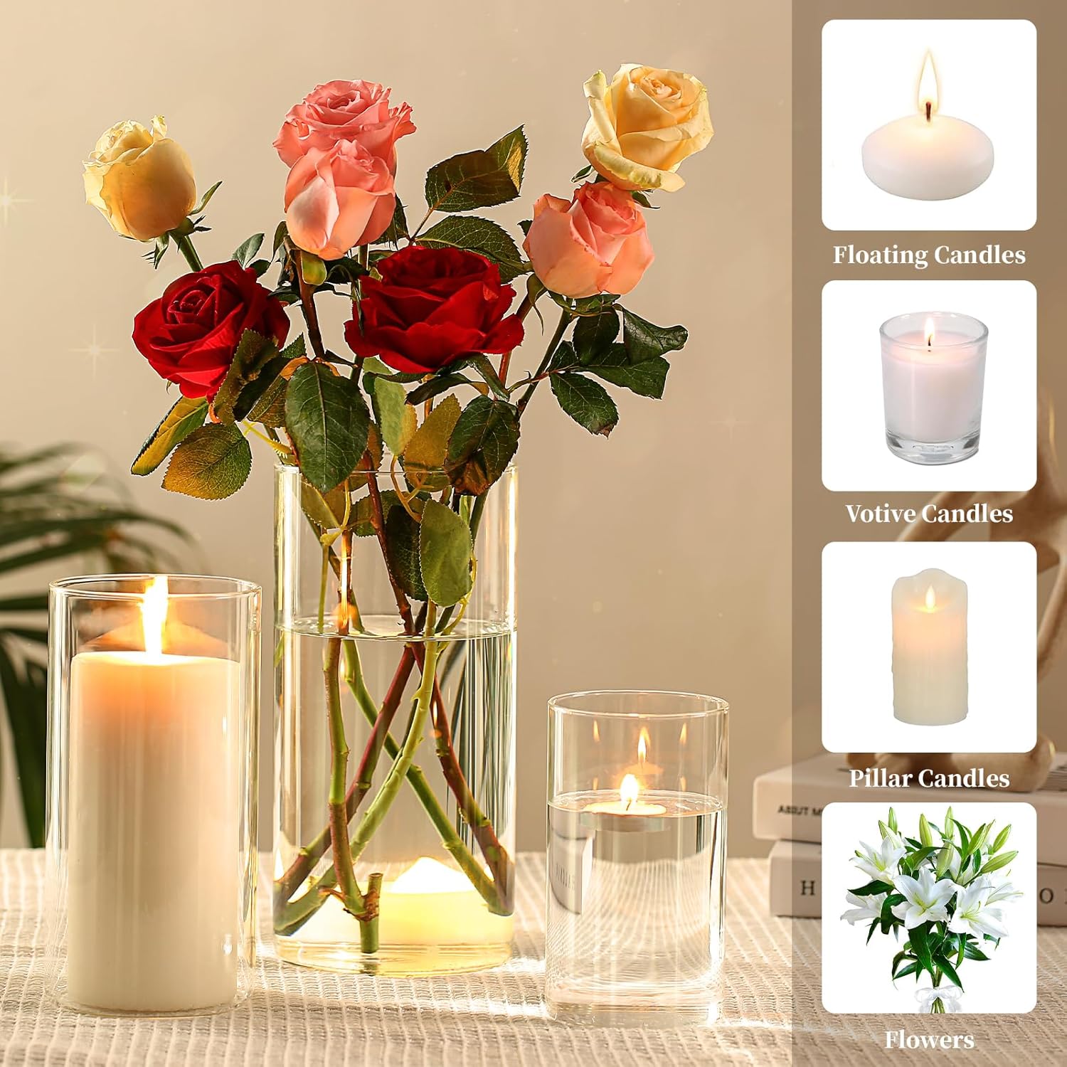 - Multiple Occasions Use -- The hurricane decorative glass vases for centerpieces are great gift for Christmas, thanksgiving, wedding, housewarming, holiday, Mother's Day, birthday and anniversary. Beautiful decor for bookshelves, tables, window sills, countertops, kitchen, dining room, living room, office and more.