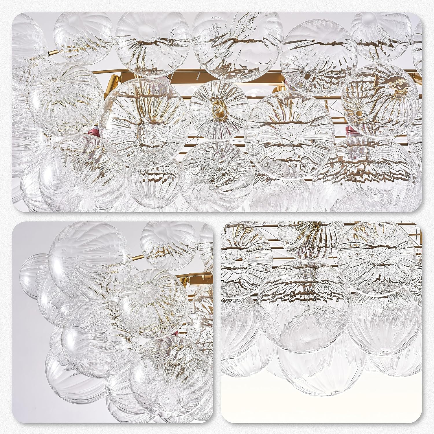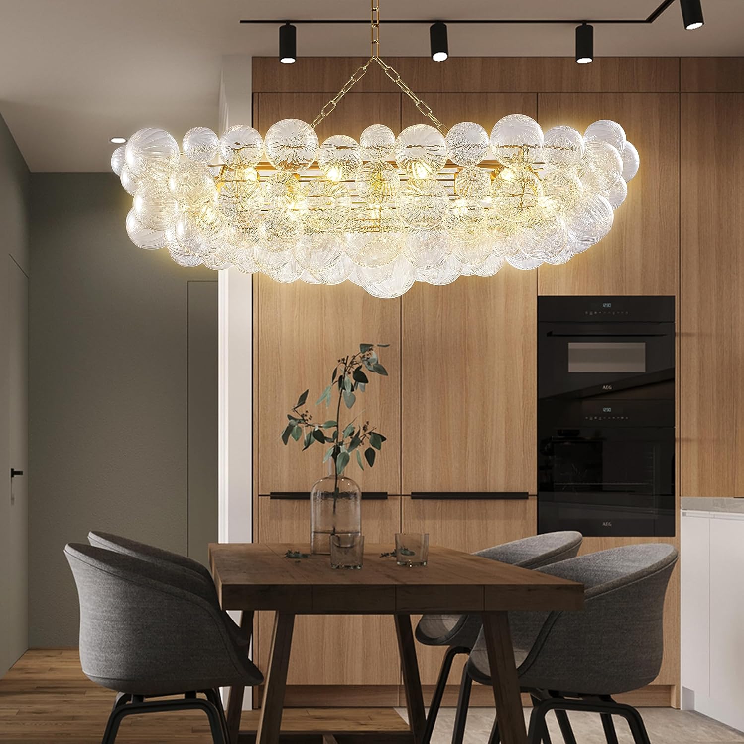 Nordic Bubble Ball Swirled Glass Chandelier, 36" Long Rectangular Chandeliers Island Light Fixture Gold and Clear Blown Glass Large Pendant Light Fixture for Bedroom Study Restaurant Dining Table