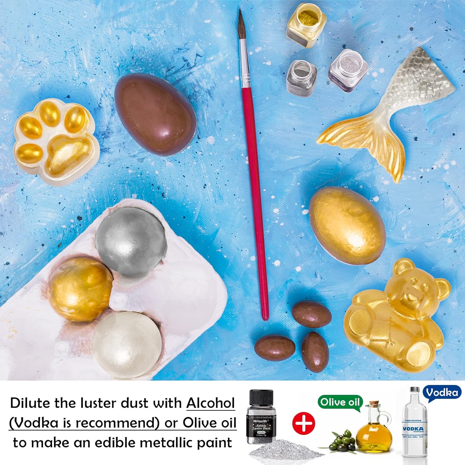 - 🌟【Easy to Use】Specially developed for food decoration and craft industries, this luster dust produces realistic looks by highly pigmented colors with a metallic finish. The pretty fine grain is more convenient for painting. To add glimmer and sparkle to your creations, simply sprinkle or dry brush the luster glitters on them. This product adheres very well to both wet and dry mediums. Attention: Seal and store glitter powder in a cool and dry place after use. Do not expose to excessive heat.