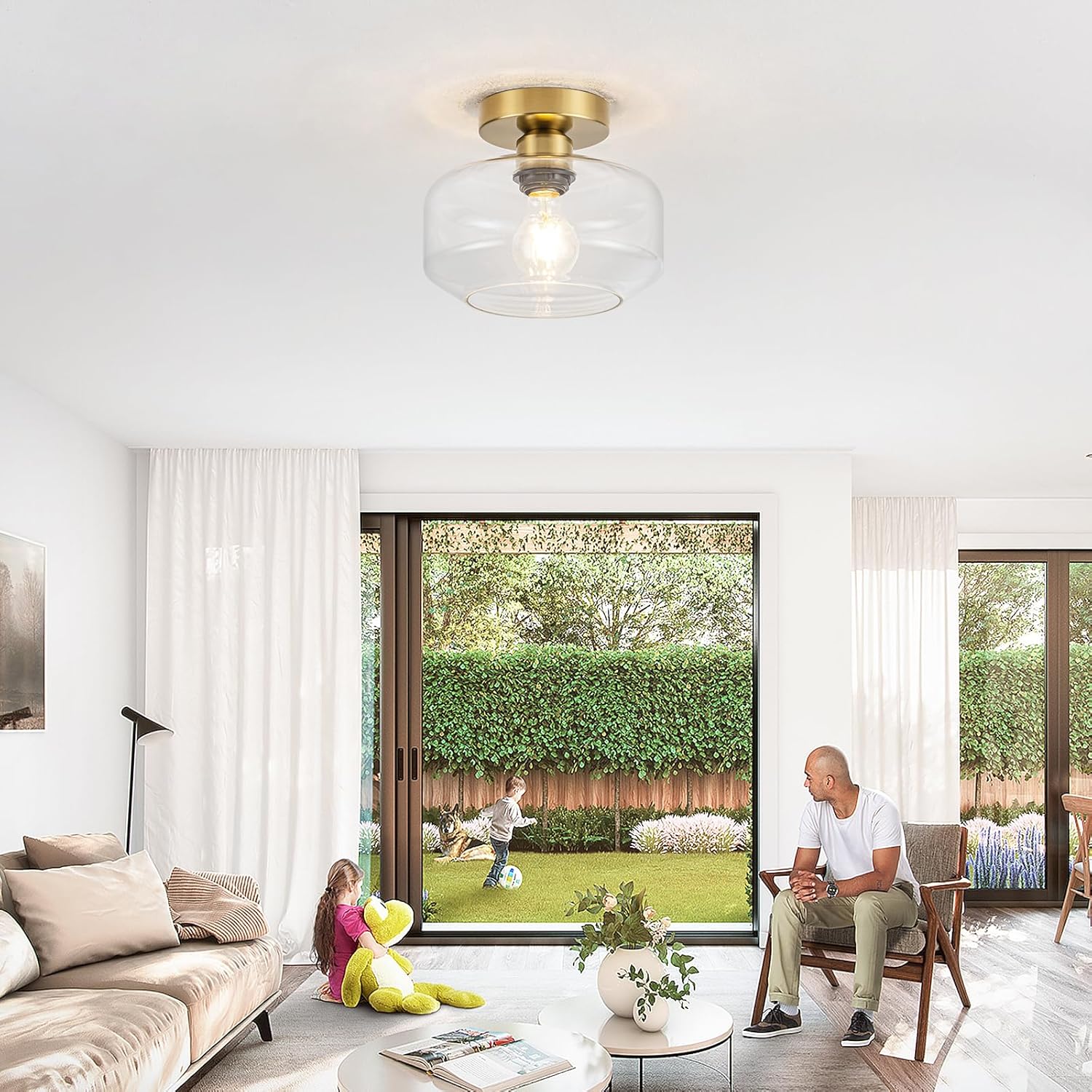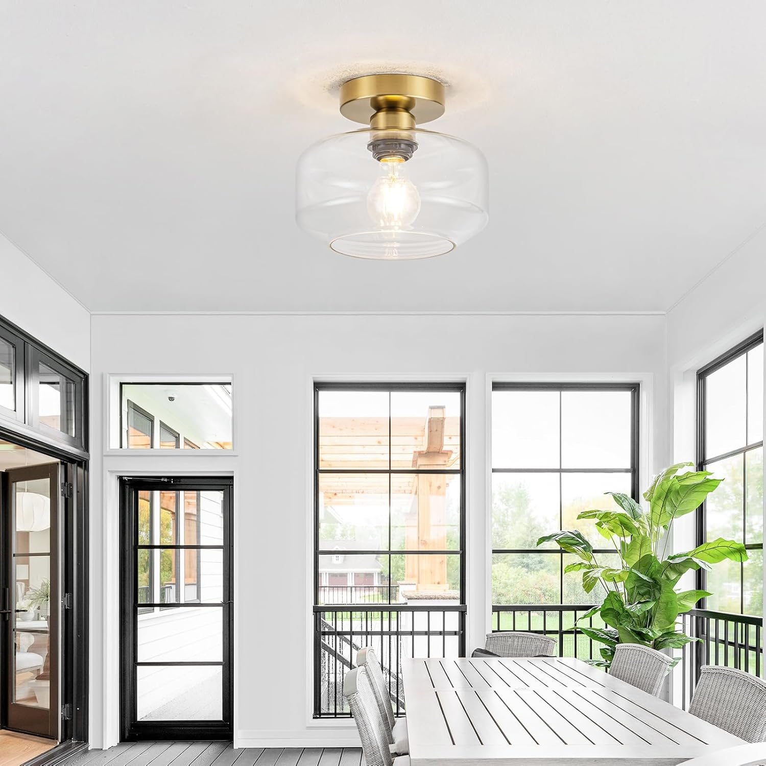 - 1️⃣ 【Premium Semi Flush Mount Design】 Vintage-inspired brass gold base with hand-blown clear glass shade creates crystal-clear illumination. Ideal as retro kitchen lighting fixtures ceiling or elegant hallway light fixtures.