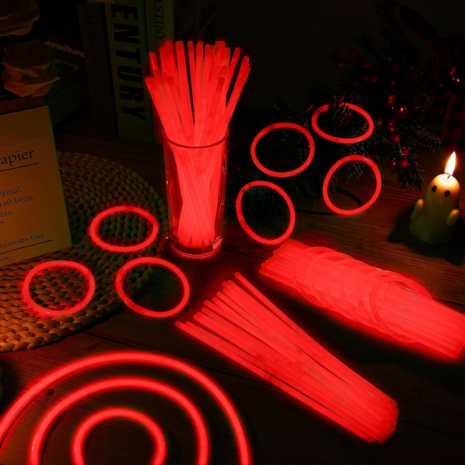 60 Pack 8” Red Glow Sticks Bulk with 60 Connectors Neon Glow In The Dark Party favors Supplies for Holiday Birthday Party Decoration (Red)