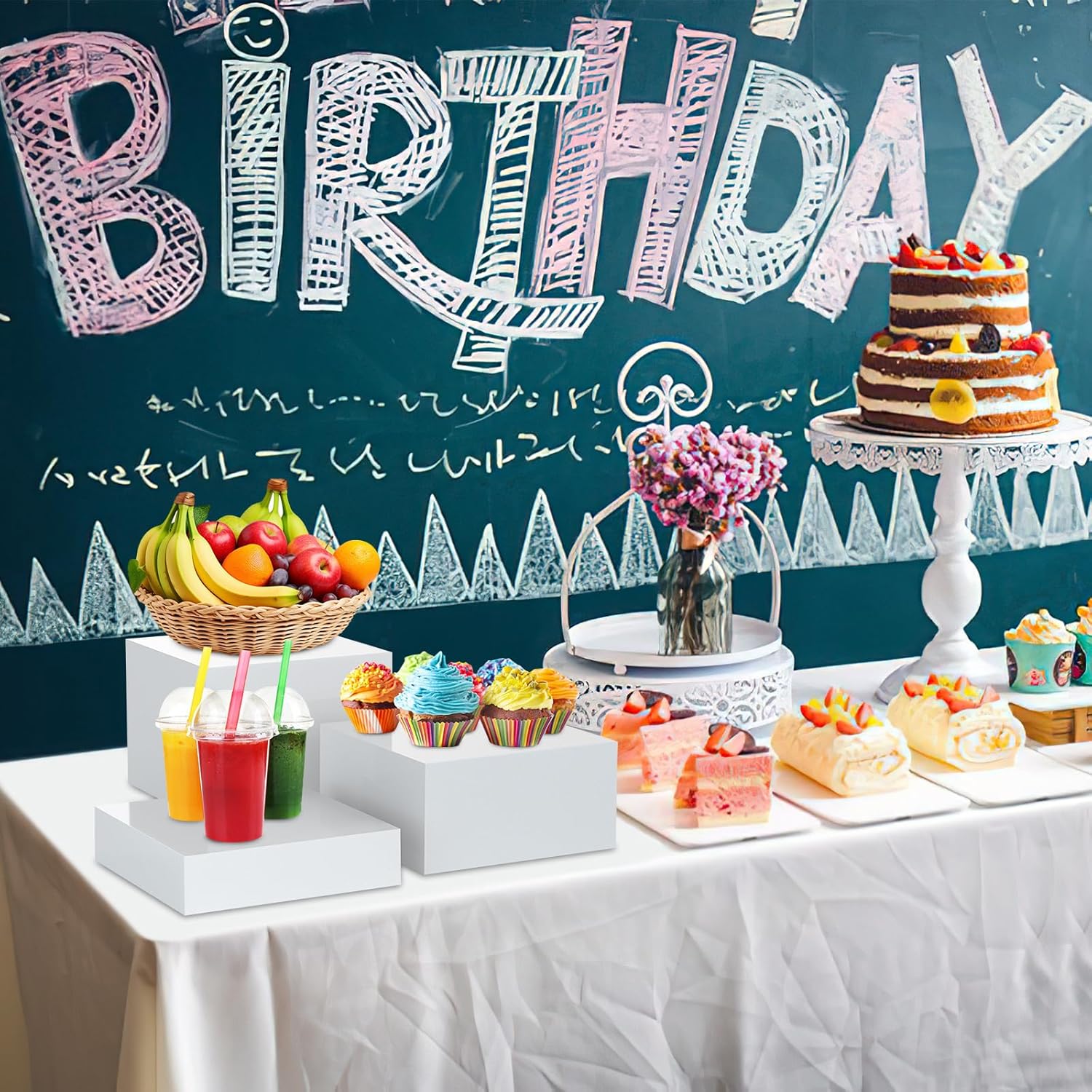 - Wide application: The display risers for tabletop use are suitable for displaying jewelry, collectibles, props, figures, cosmetics, cake, dessert table decorations in big events, parties, weddings, dinner