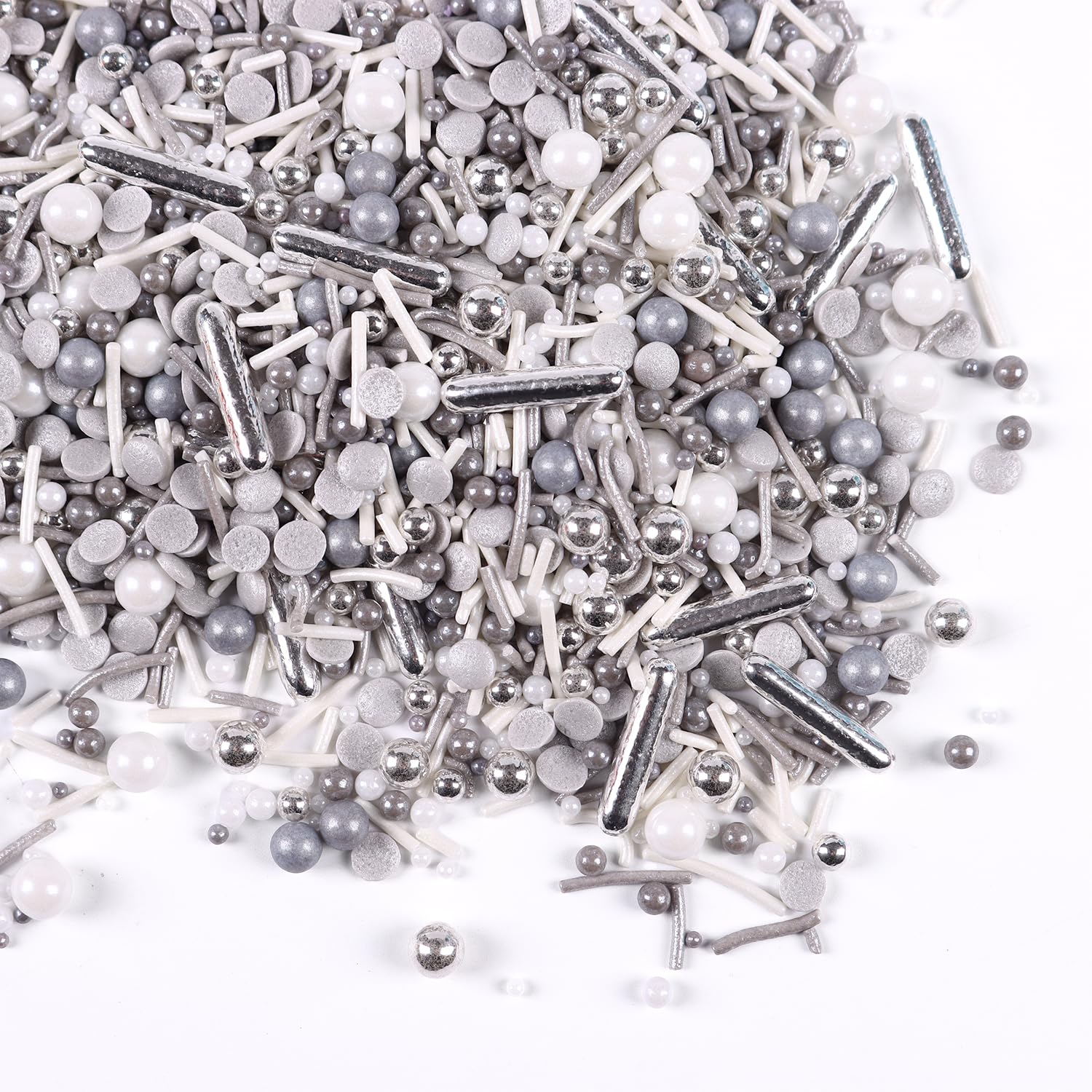 - Silver Sprinkles for Cake Decorating: A bottle of sliver sprinkles mix(120g/4.23oz), whether it's cakes, cupcakes, cookies, ice cream, cake pops, brownies, or any dessert you can dream of; our silver metallic sprinkles are your go-to for that extra dash of cheer.
