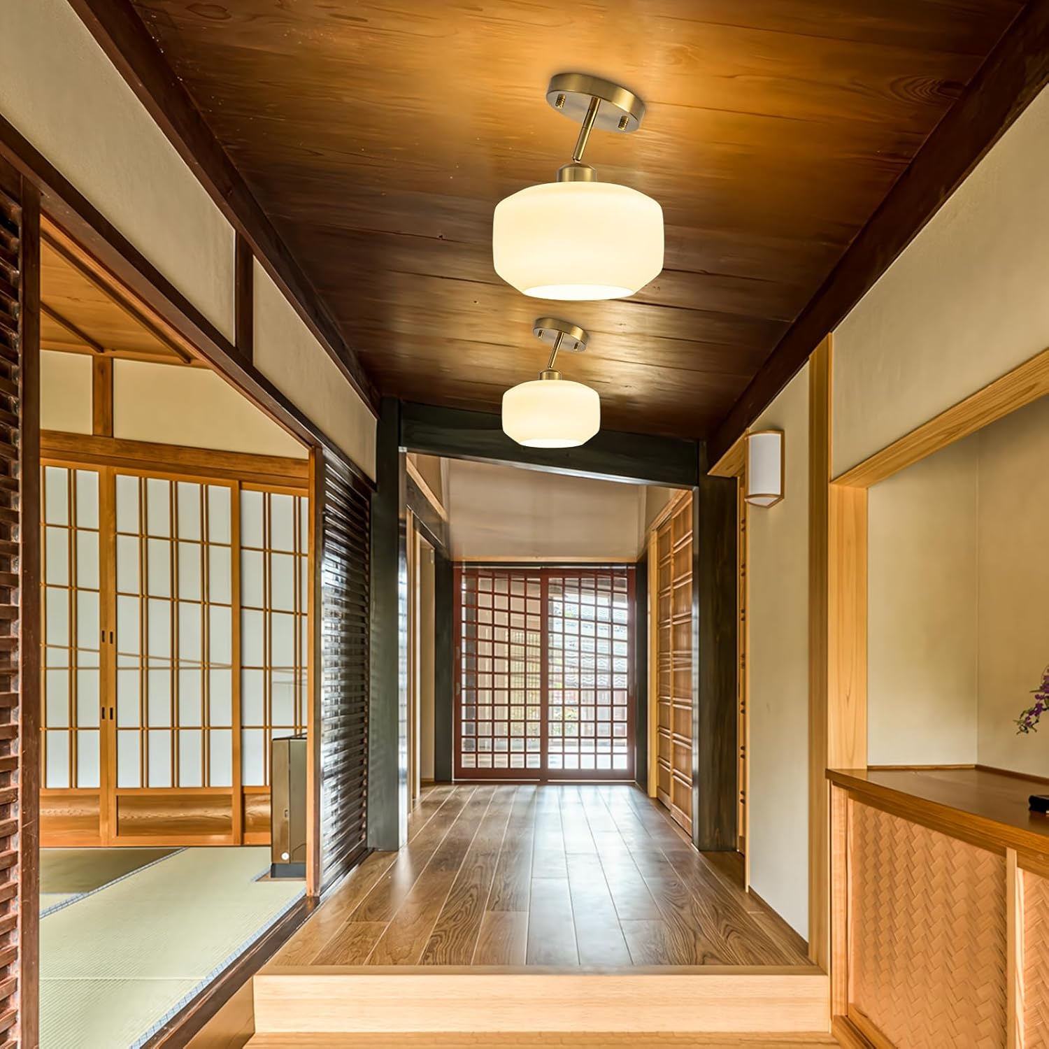 Tbaoinal semi Flush Mount Ceiling Light Fixture Adjustable Hanging Brass Gold Light Fixture 8.66" Modern Frosted Opal Milk Glass Shade Sloped Ceiling Adaptable for Hallway Light fixtures Entryway