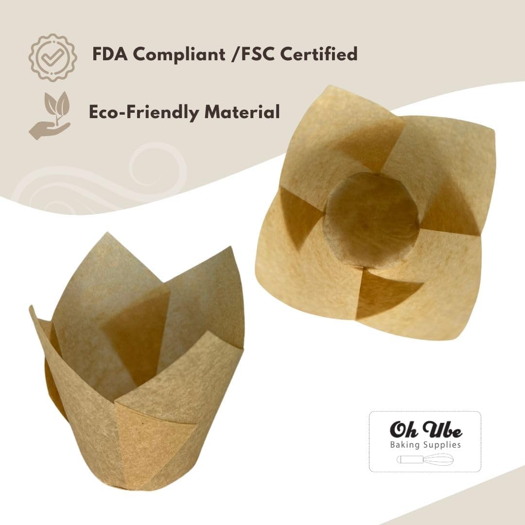 - Premium Quality: Elevate your baking with our high-quality tulip cupcake liners, made with all natural, 100% wood pulp. Premium Quality: Odorless, Non-toxic, Greaseproof, Heat-resistant up to 220° C / 428° F. Elevate your baking with our high-quality tulip baking liners.