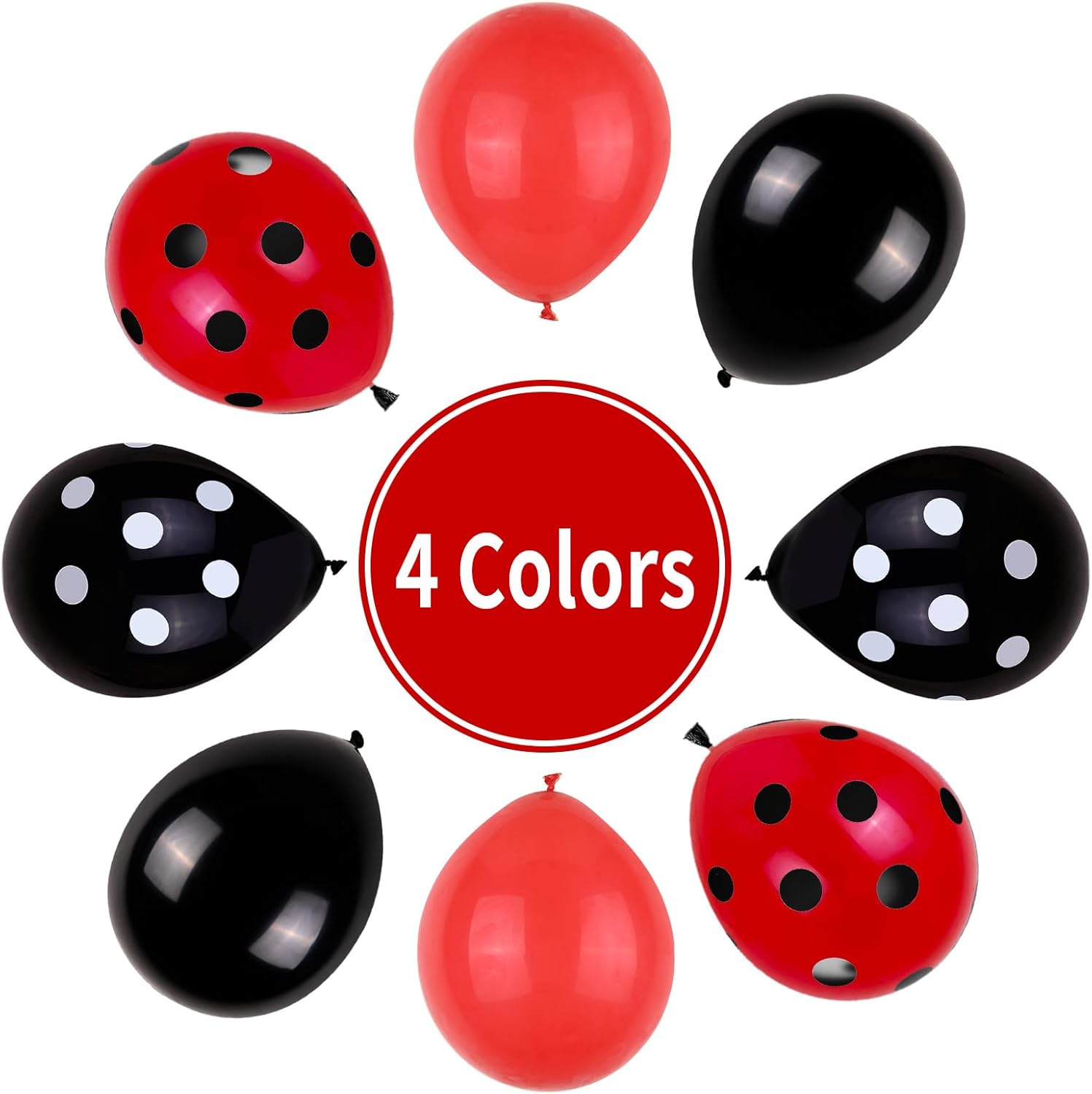 - 【12Inch Party Balloons Set】: The ladybug balloons set includes 20pcs matte red balloons, 20pcs matte black balloons, 10pcs red black polka dot balloons, 10pcs black white polka dot balloons, 1pc silver ribbon. 61pcs in total. Elevate your celebrations with our birthday party balloons!