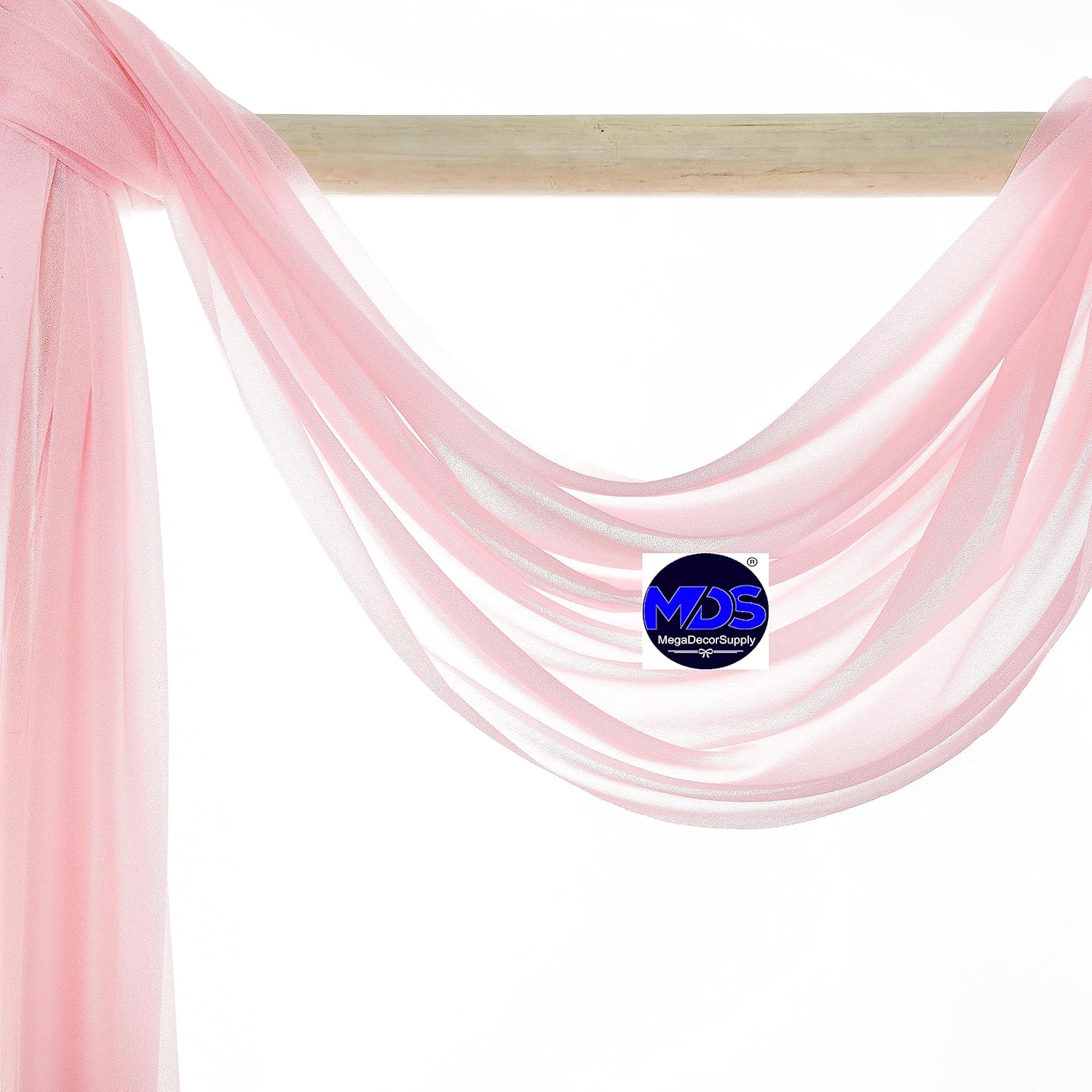 - CONTAINS : Pack of 1 PC. Each panel is 30 Inch (Wide) x 75 Feet (Long). Thermal cutting no seaming technique. Seamless, one-piece design. Each panel is cut entirely from one single piece of fabric. It is perfect length for arch either round or rectangle for a elegant puddle drop. Soft and overhanging pendants make the wedding decorations more popular.This chiffon drapery backdrop can help your party to create a warm and elegant scenes.