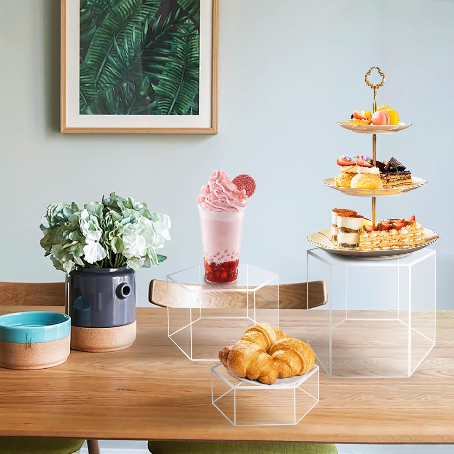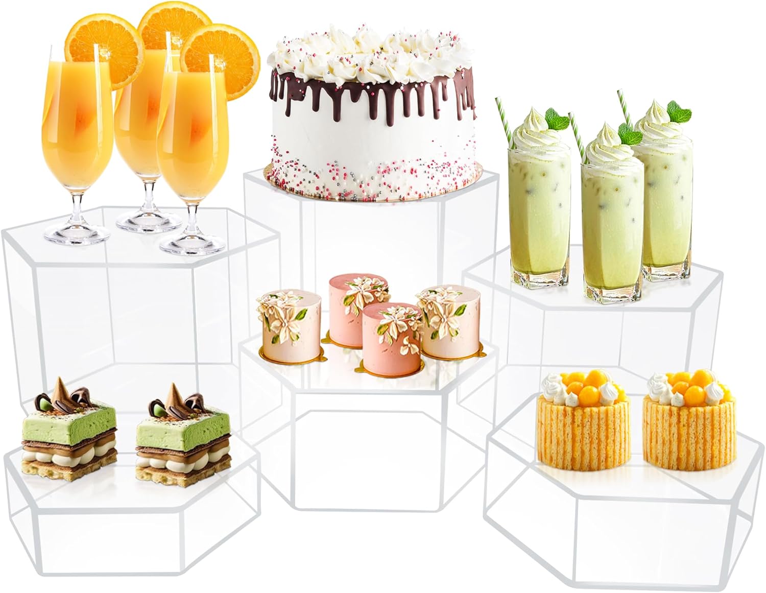 6 Pcs Buffet Risers, Dessert Stands, Acrylic Boxes for Display, Hexagonal Jewelry Showcase, Riser Display Cases Acrylic Display Base, Clear