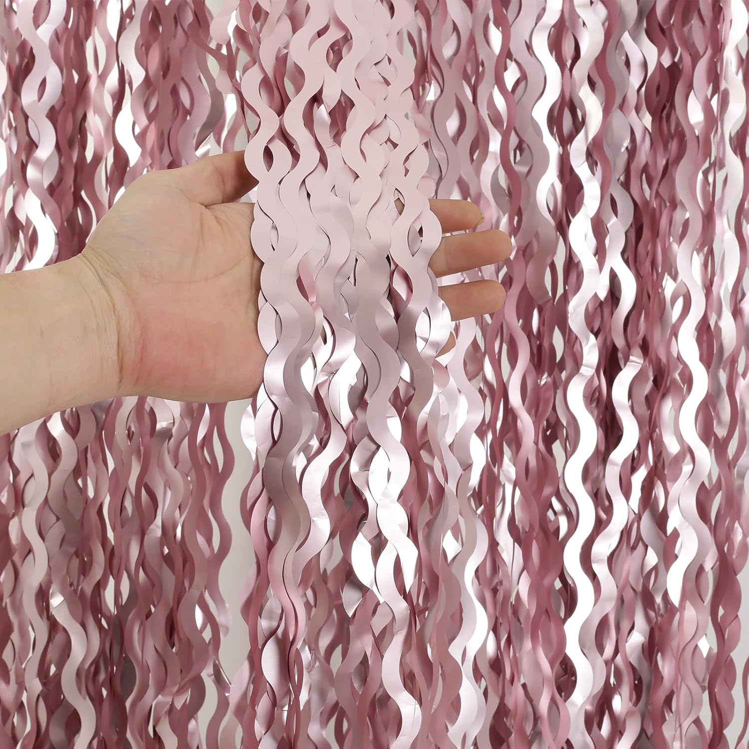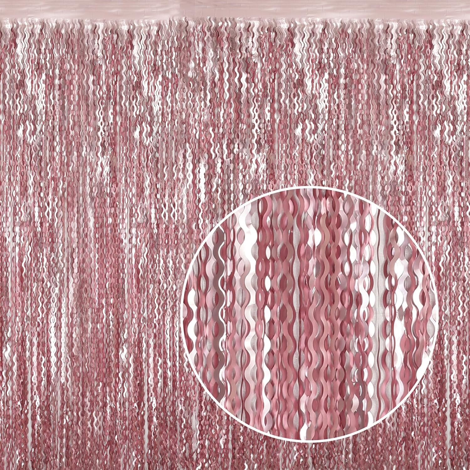 - Package Contents: 4 pack pink wavy foil fringe curtains,each curtain is 3.3ft x6.6ft,You can cut the metallic backdrop into the suitable length for use,Wonderful accessories for decorating doors and walls