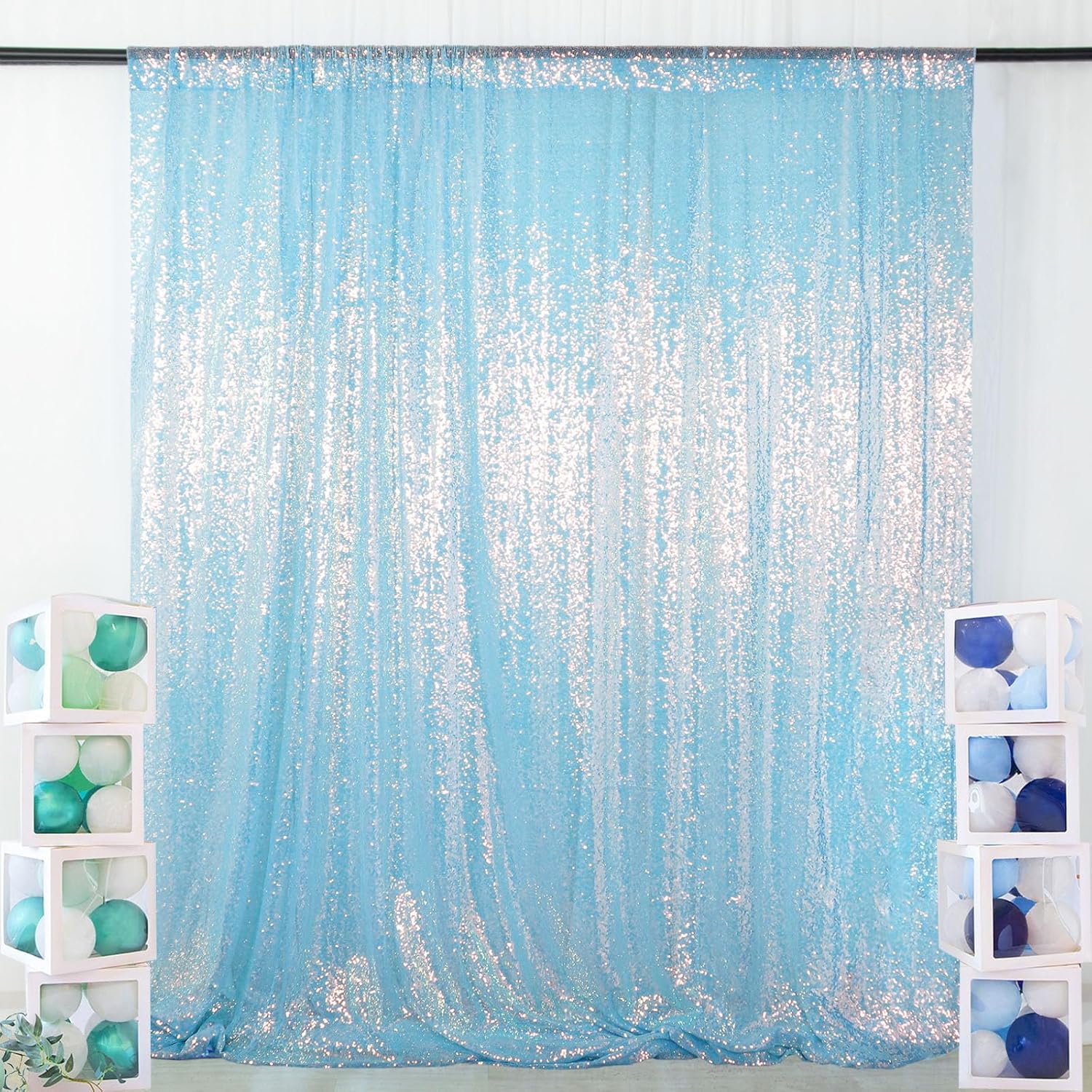 - ❤ WHAT YOU GET : 1 pc 10FT wide by 10FT height Iridescent aqua Sequin Backdrop glitter backdrop 10ft