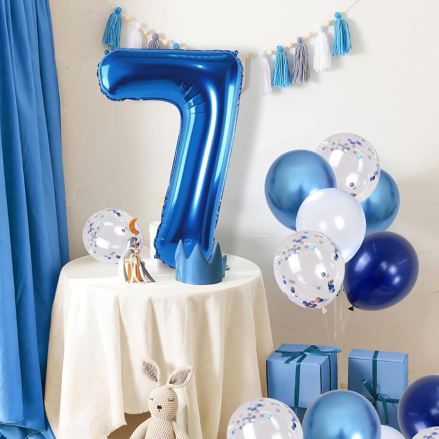 - π Dark Blue Number 7 Balloon: Our package included 40 inch foil number 7 balloon(1pcs), 12 inch metallic blue balloon(4pcs), blue silver confetti balloon(4pcs), pastel blue balloon(4pcs), Light Navy Blue Balloon(2pcs), 1pcs straw and 1 roll ribbon. Simply inflate the balloon using the straw, and you're ready to party! Navy blue number foil balloons are the best for girls or boys birthday party decoration.