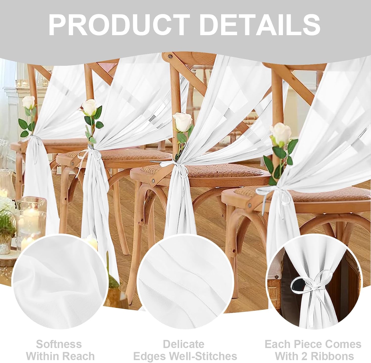 - PACKAGE CONTENTS:You will get 10 pieces of chiffon tablecloths, single tablecloth size: 30 x 300cm/12 x 120in. Each tablecloth is equipped with 2 white ribbons, which can be used to tie the sides to fix, the quantity is enough for wedding banquet and various parties, our tablecloths are suitable for tables with 6-8 seats