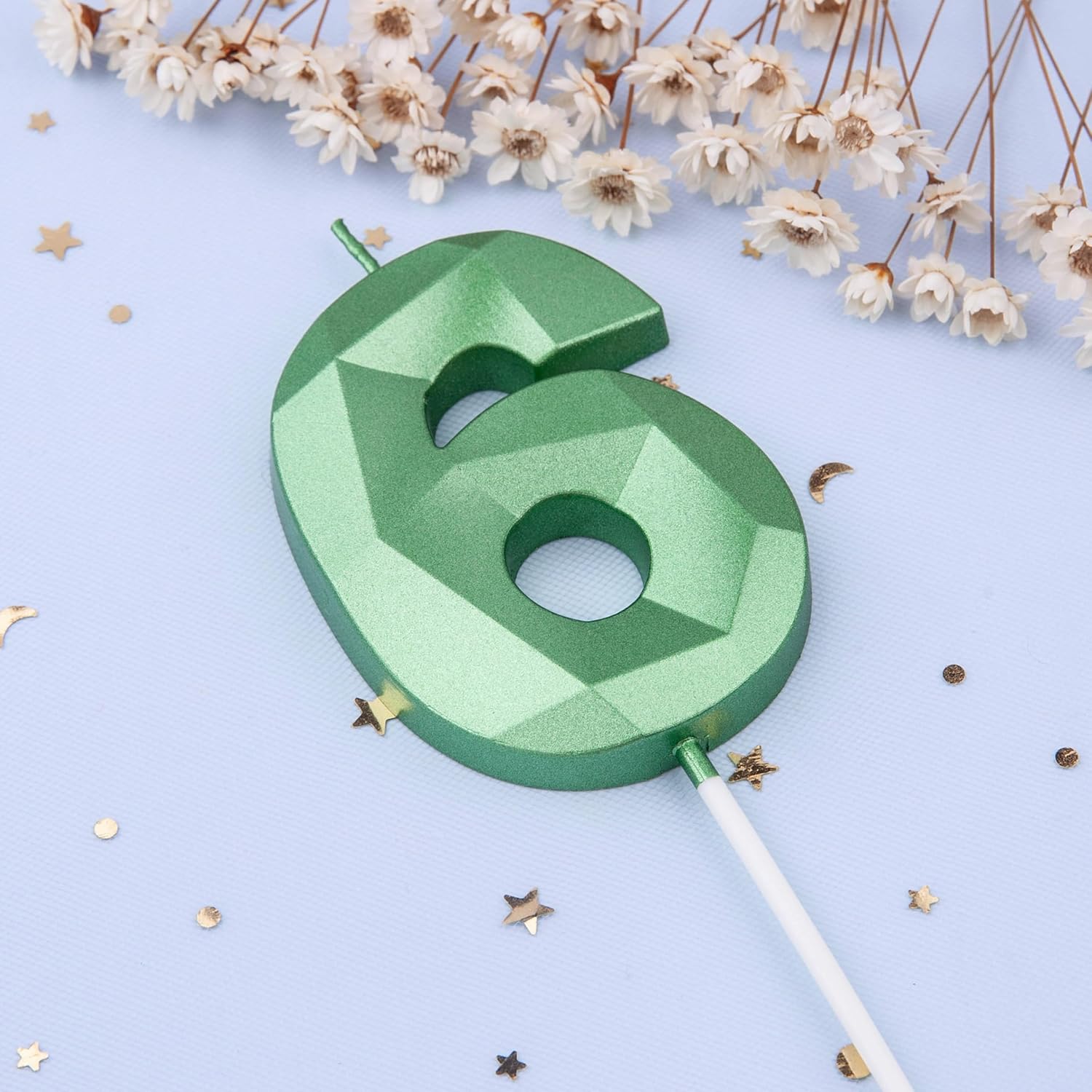 - New: 2.76 Inch Large Crystal Green 6 Number Birthday Candle designed to make your cake and birthday a unique and truly inspiring event.