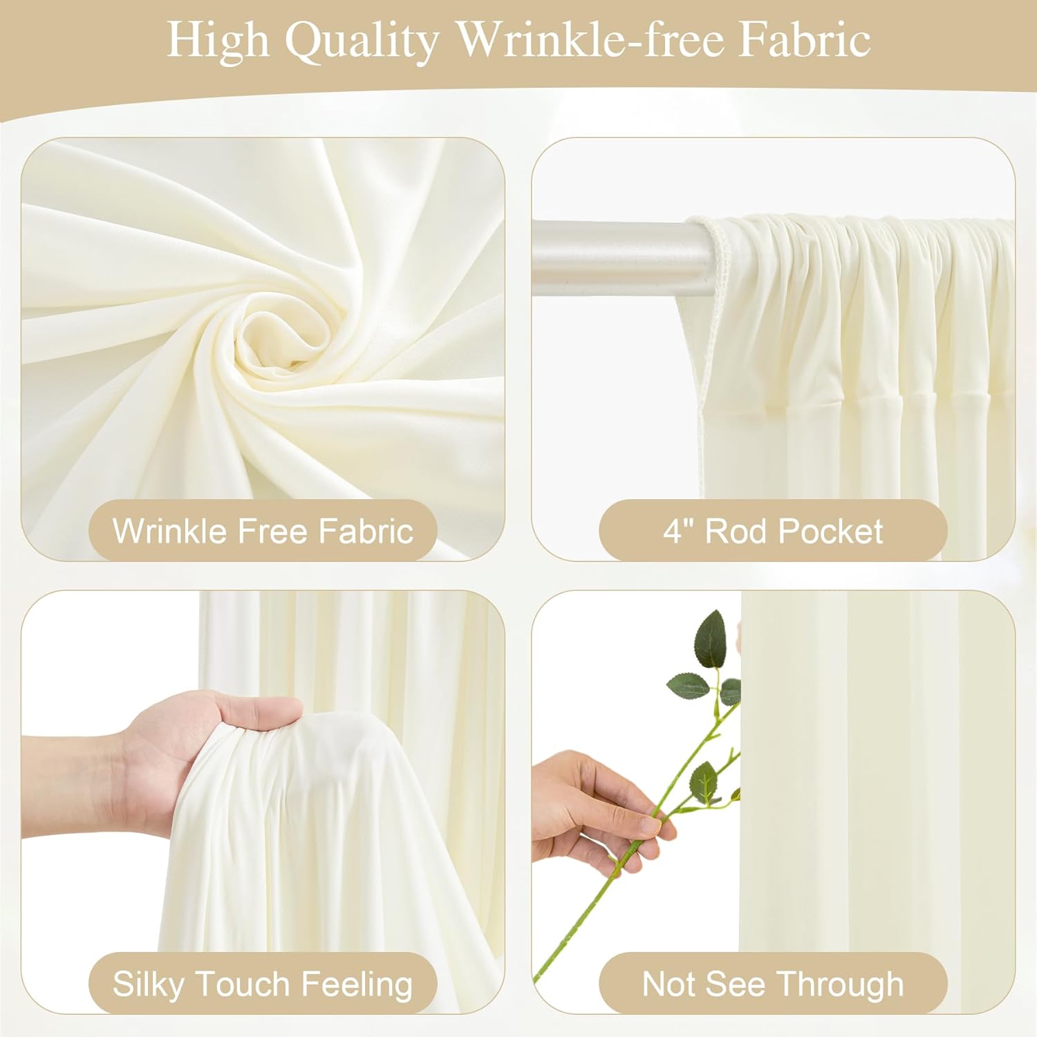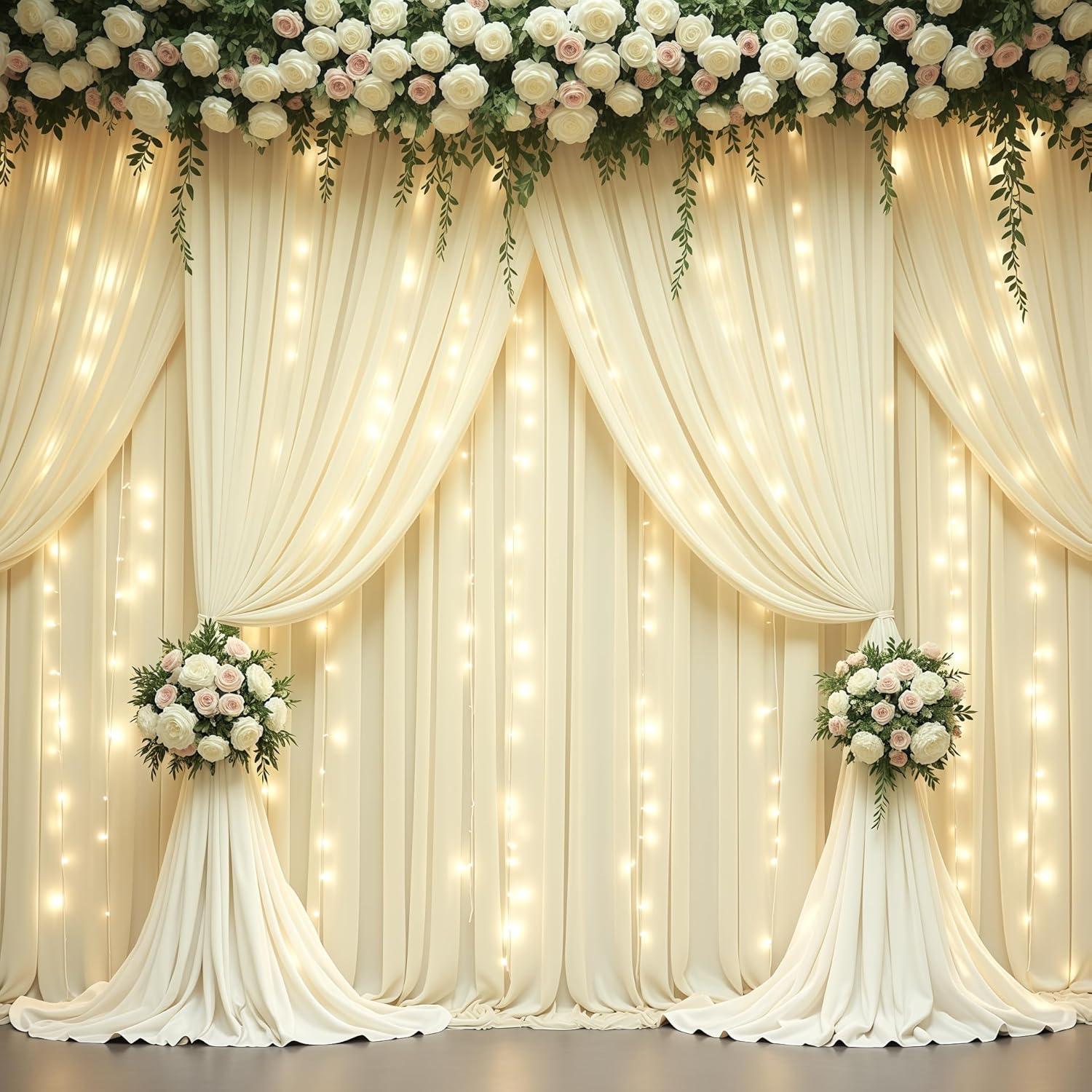 • 【Wedding Backdrop Material】- Our beige curtain lights for backdrop is crafted from premium 100% high-quality polyester fabric which offers a silky smooth texture, and an irresistibly soft touch akin to milk. You can dress it up with a gorgeous background or use lights to create a romantic atmosphere.