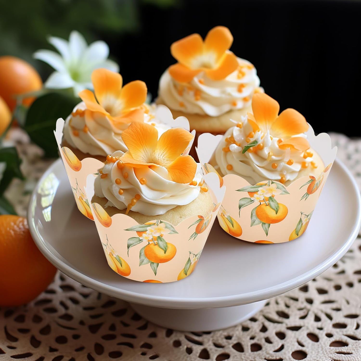 - Orange Design - Our cupcake liners are printed with cute orange, flower and leaf patterns, combine delicate watercolor style, delicate and attractive, perfect for cupcake decorations.