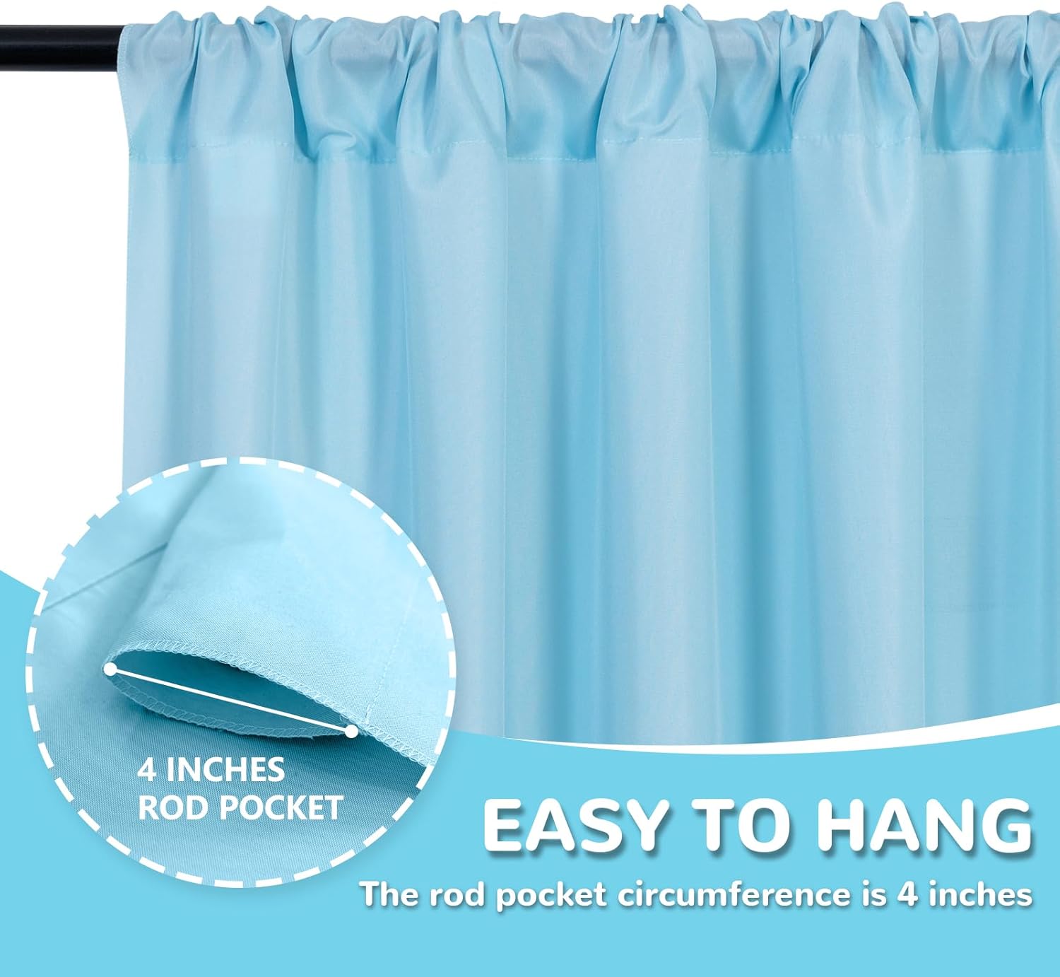 - MATERIAL:The backdrop curtains are made by High Quality Polyester. Polyester fabric is stain resistance; The background curtain can be cleaned with various cleanser while maintaining an elegant appearance.