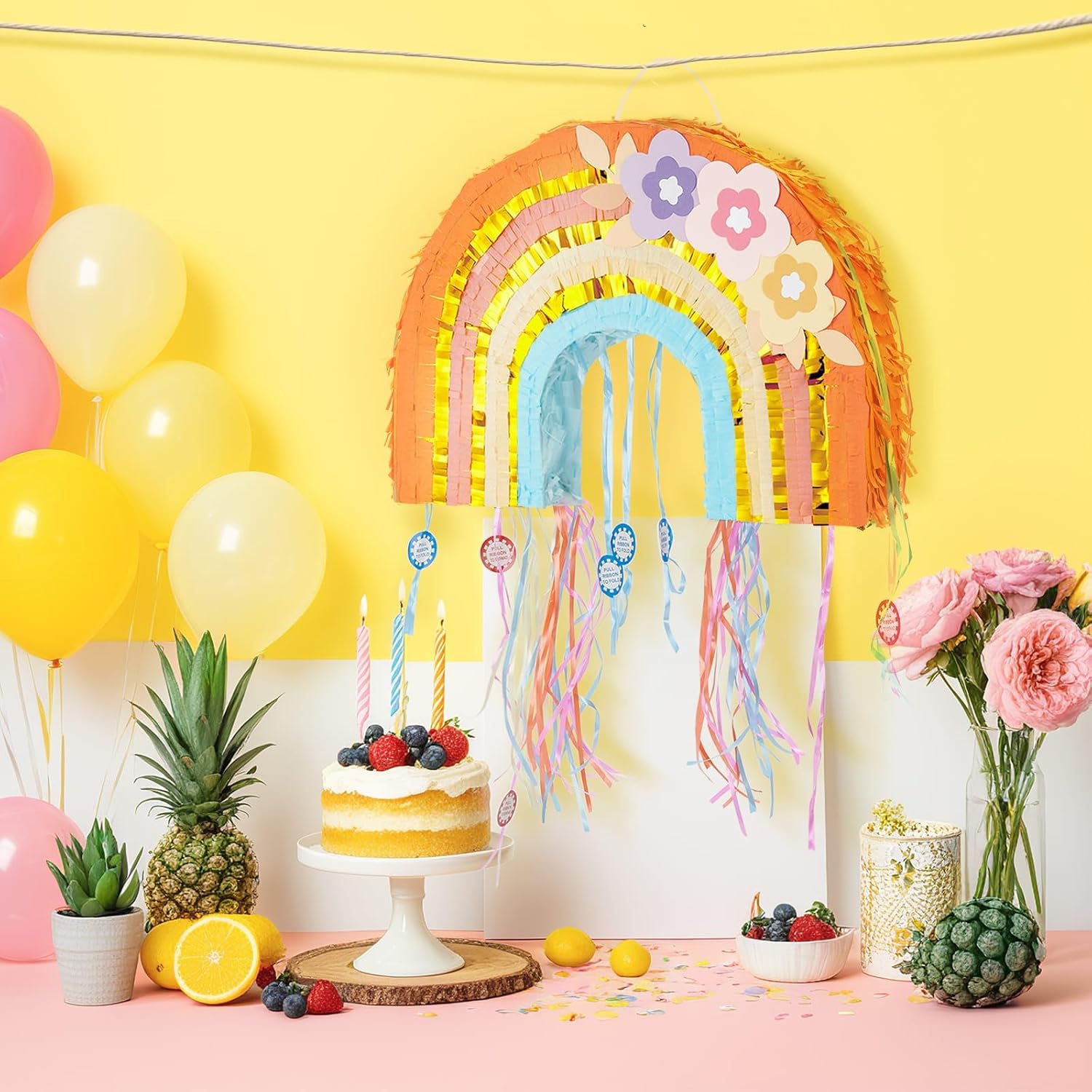 - FOLDABLE RAINBOW PIÑATA - This Piñata is the ideal addition to your rainbow theme birthday party decorations, ensuring your party visually stunning and memorable.