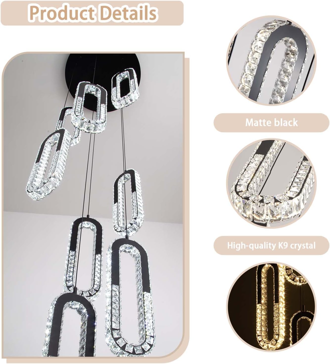 - 【 Modern Chandelier Use Range】: Black chandeliers can be used in living rooms, kitchens, dining rooms, stairs, entryways, foyers, hotels, villas, shops restaurants, coffee shops and more.