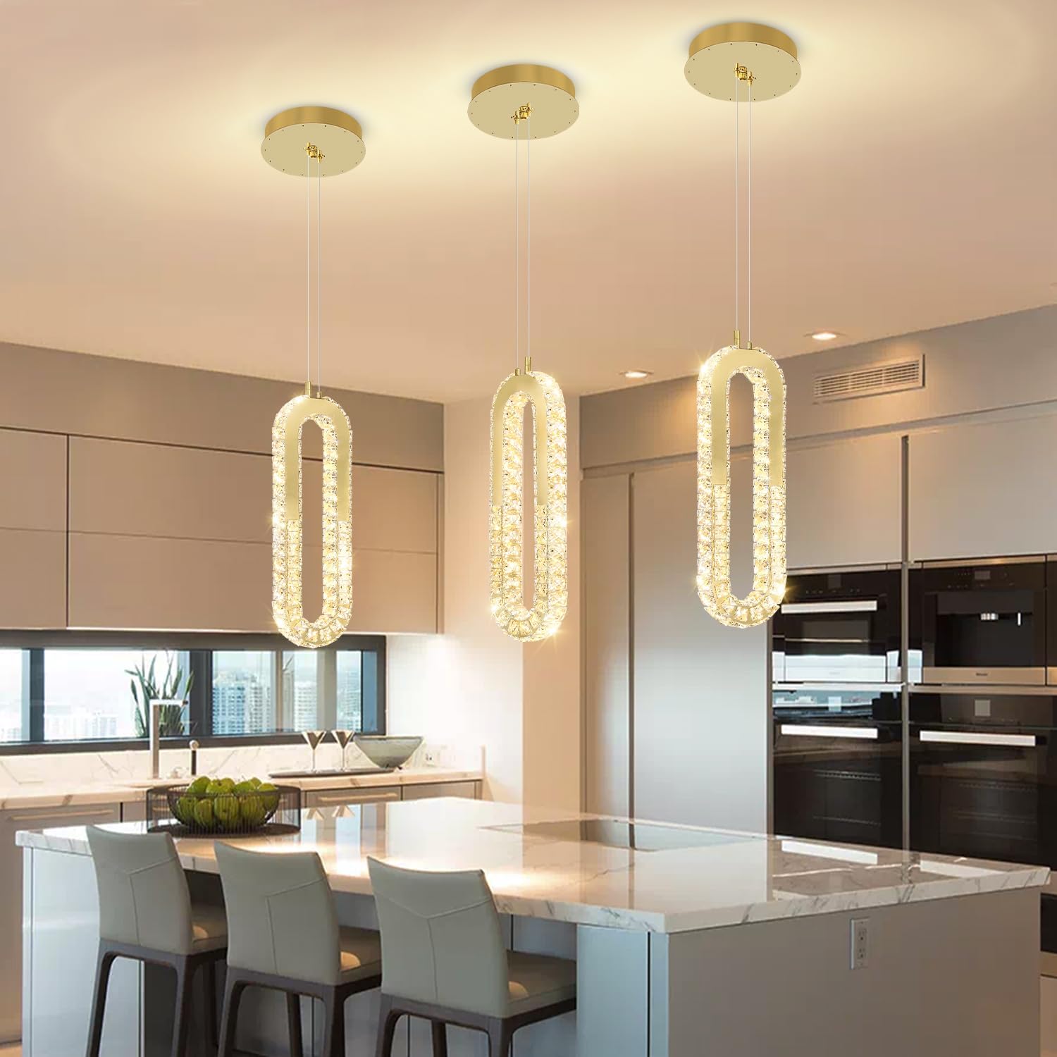 1-Ring Chandelier Gold Modern Pendant Lighting LED Dimmable Hanging Crystal Chandelier for Kitchen Island Foyer Lobby Living Room Staircaes