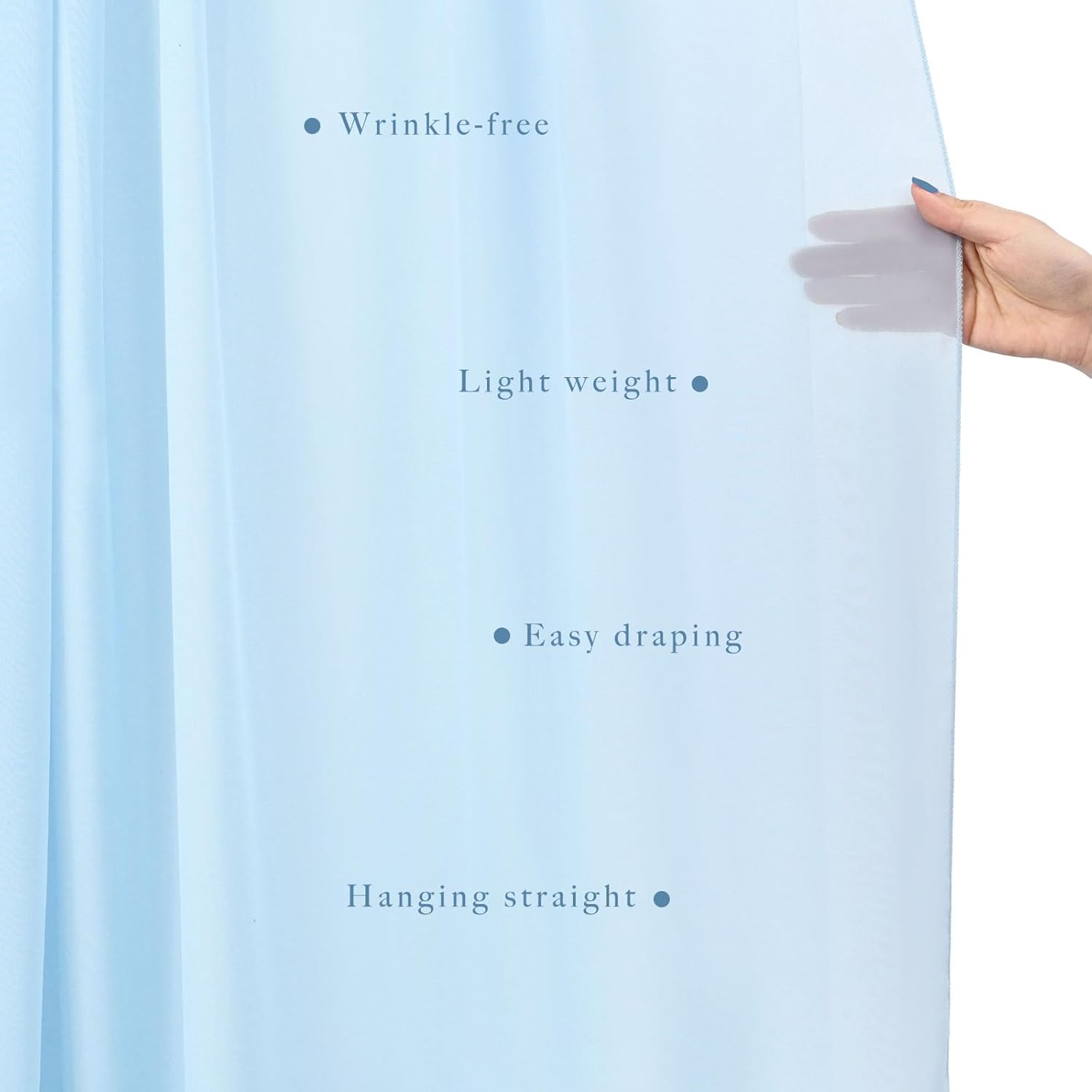 - Wedding Arch Drapes Fabric Package: Set consists of 2 baby blue transparent arched curtains, each 20Ft Length x 28" Width, The dimensions of each piece have been precisely measured and there is not much difference. Perfect for wedding arches of many styles and shapes.