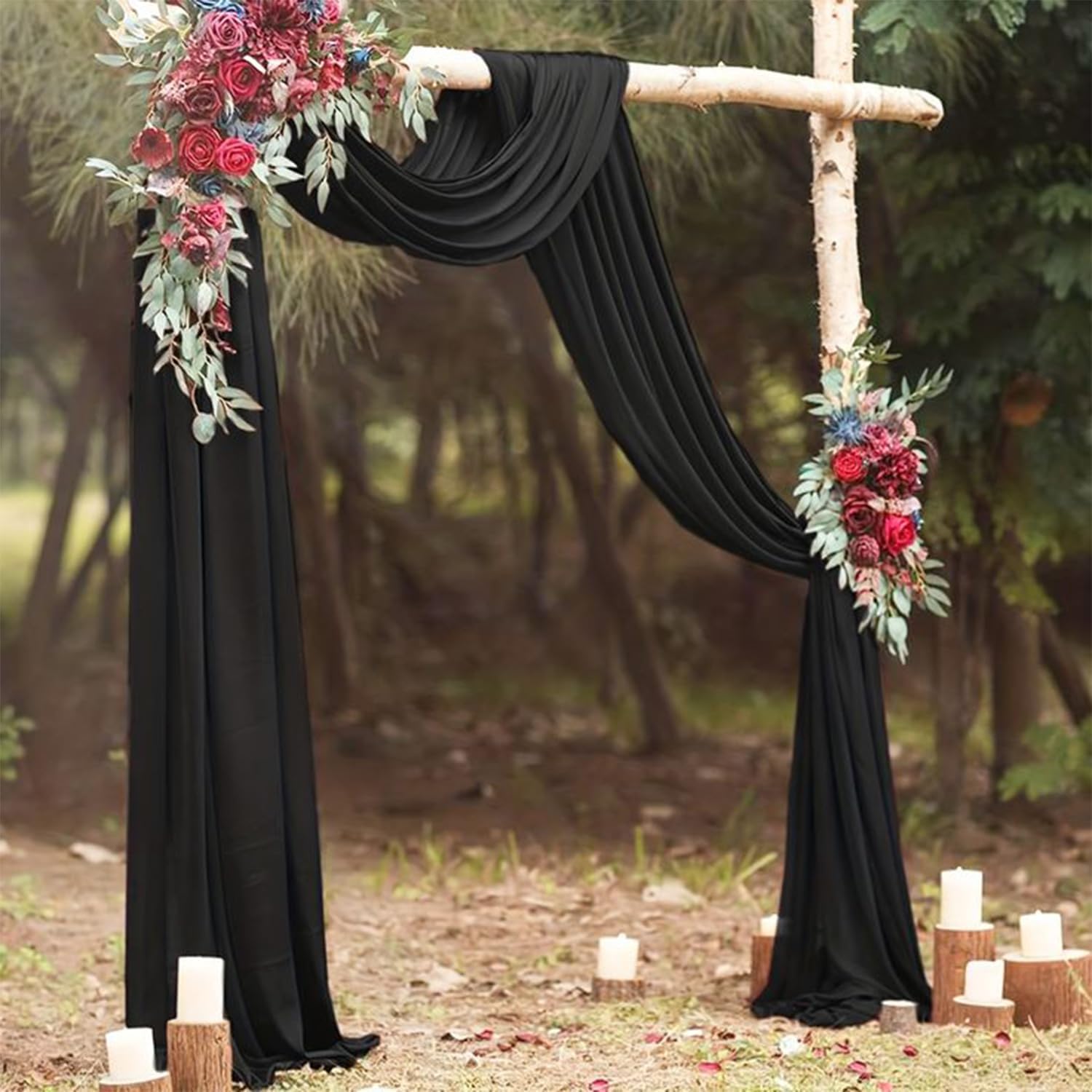 20Ft Length x 28" Width 2 Panels Wedding Arch Draping Fabric Black Arch Drapes Chiffon Fabric Sheer Curtains Backdrop for Party Decor Wedding Bridal Ceremony Ceiling Stage Reception Decorations