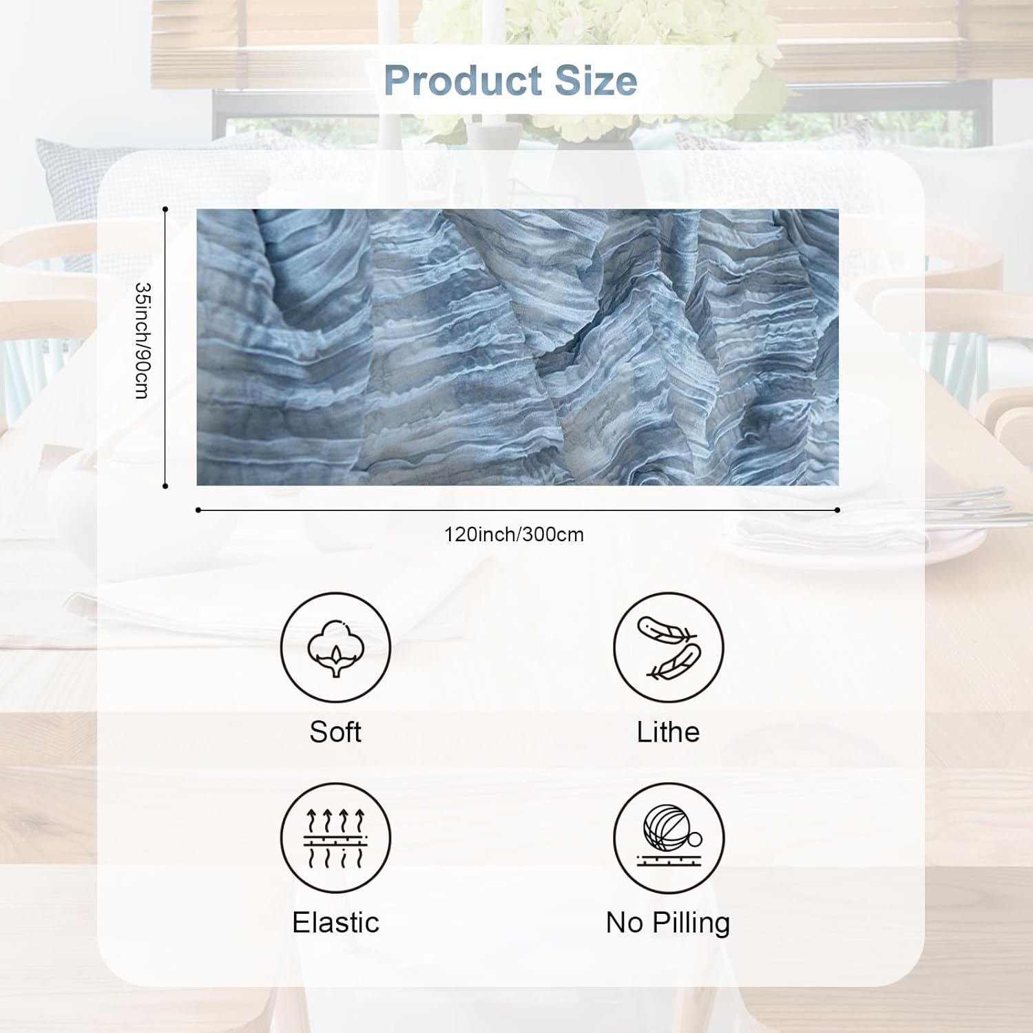 - User-Friendly: We understand the importance of convenience for our customers. Our dusty blue rustic sheer table runner is easy to clean and maintain. They can be machine washed or hand washed without losing their shape or color. The lightweight and flexible nature of the cheesecloth and gauze make them easy to handle and store, saving you space and effort.