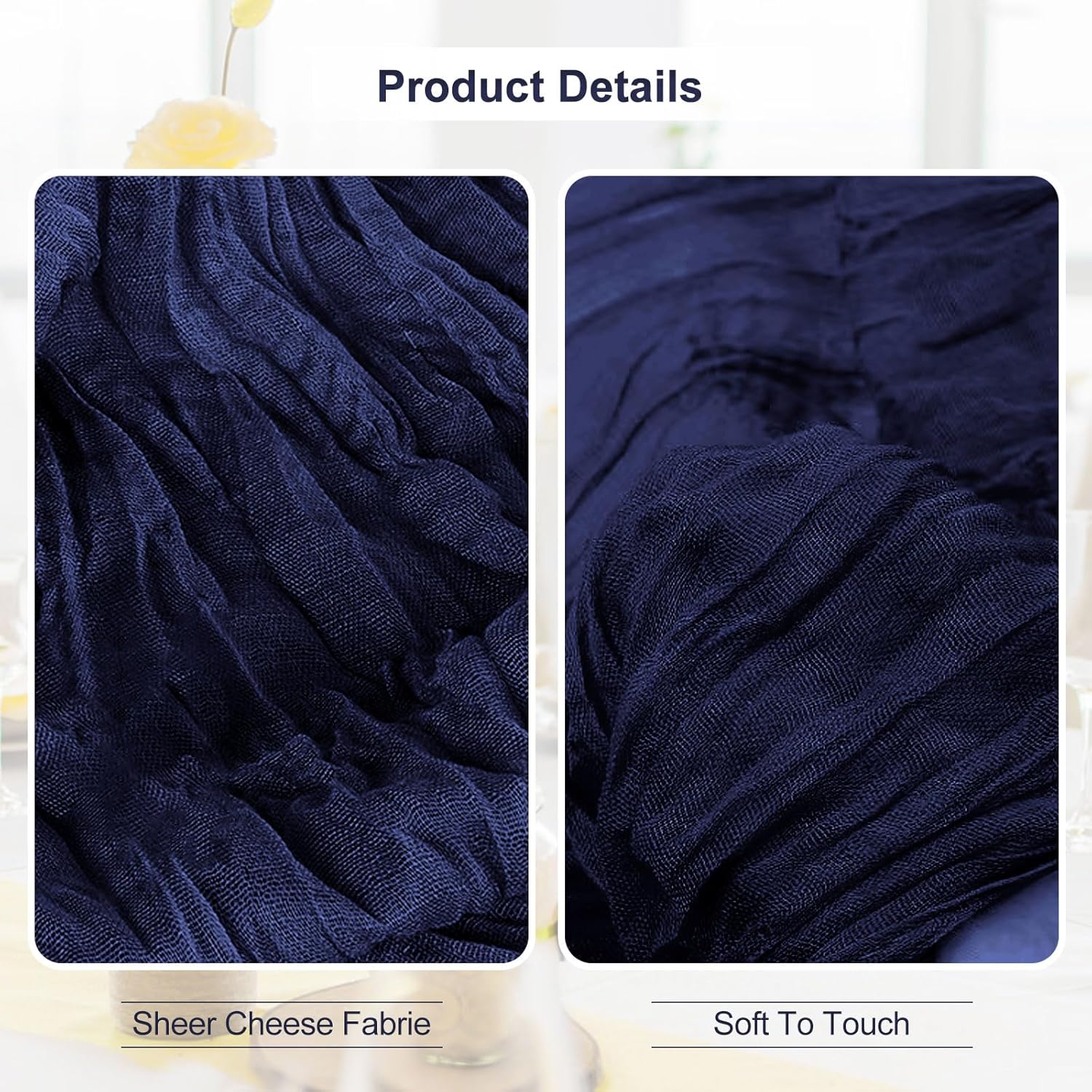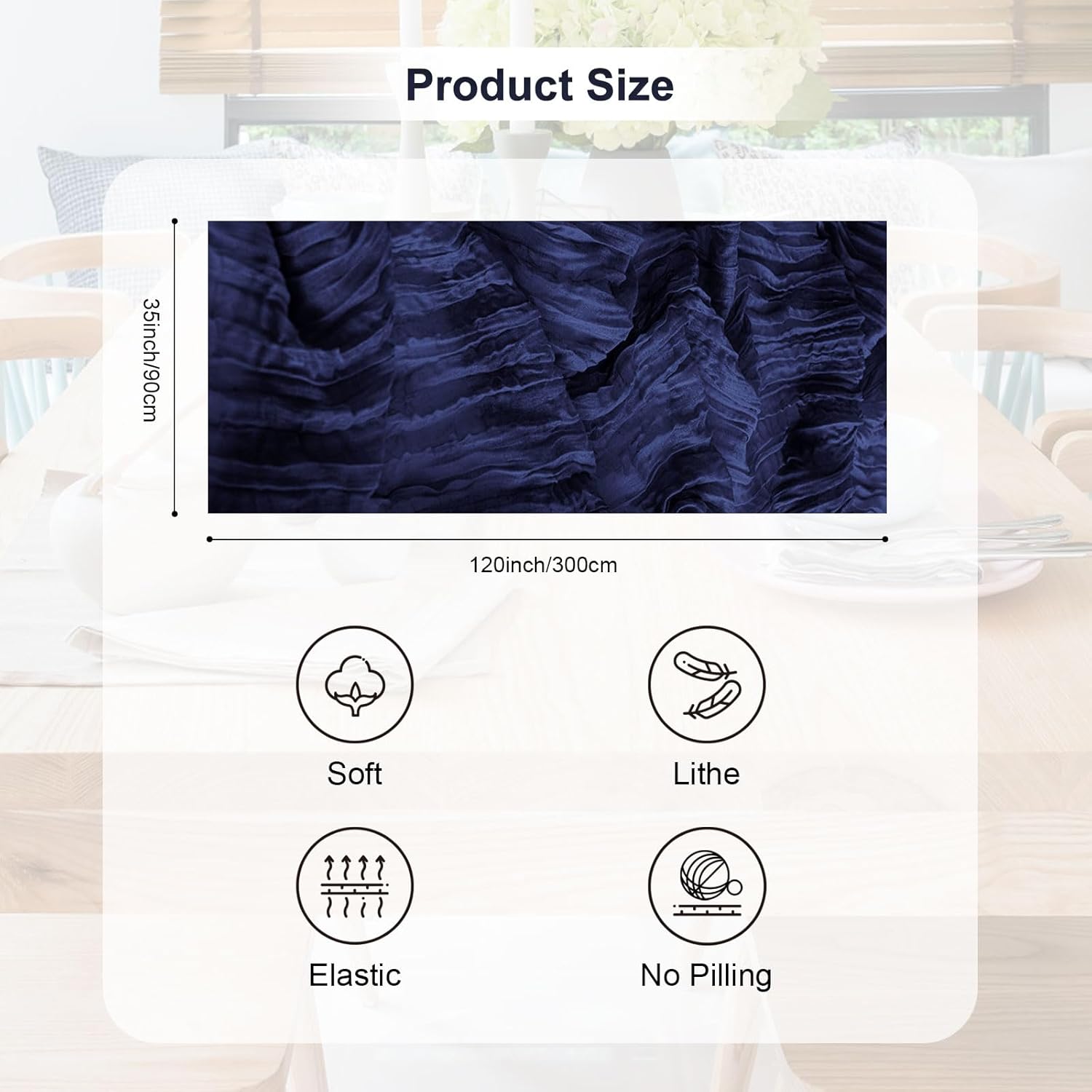 - Premium Materials: Our table runners are crafted from high-quality cheesecloth and gauze. The navy blue cheesecloth table runner has good softness and breathability, while the gauze table runner offers a delicate and elegant texture. These materials are carefully selected to ensure durability and a luxurious feel, making your table look and feel extraordinary.