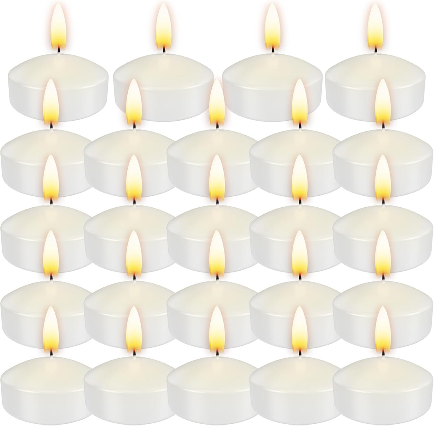 Aignis 24pcs Floating Discs Wax Candles, Burning Time 4+ Hours, 2 Inch Unscented Dripless, White Set for Wedding/Birthday/Celebration/Party/Holiday/Home Décor