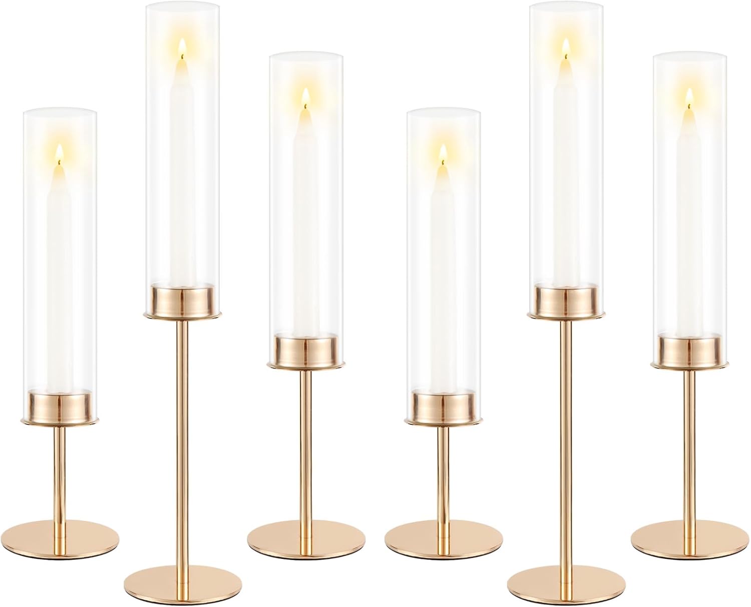 Gold Candle Holders Set of 6 for Glass Taper Candle Holders,Hurricane Candlestick Holder for Home Decor, Wedding, Dinning, Party Decorative, Anniversary (6,Gold)