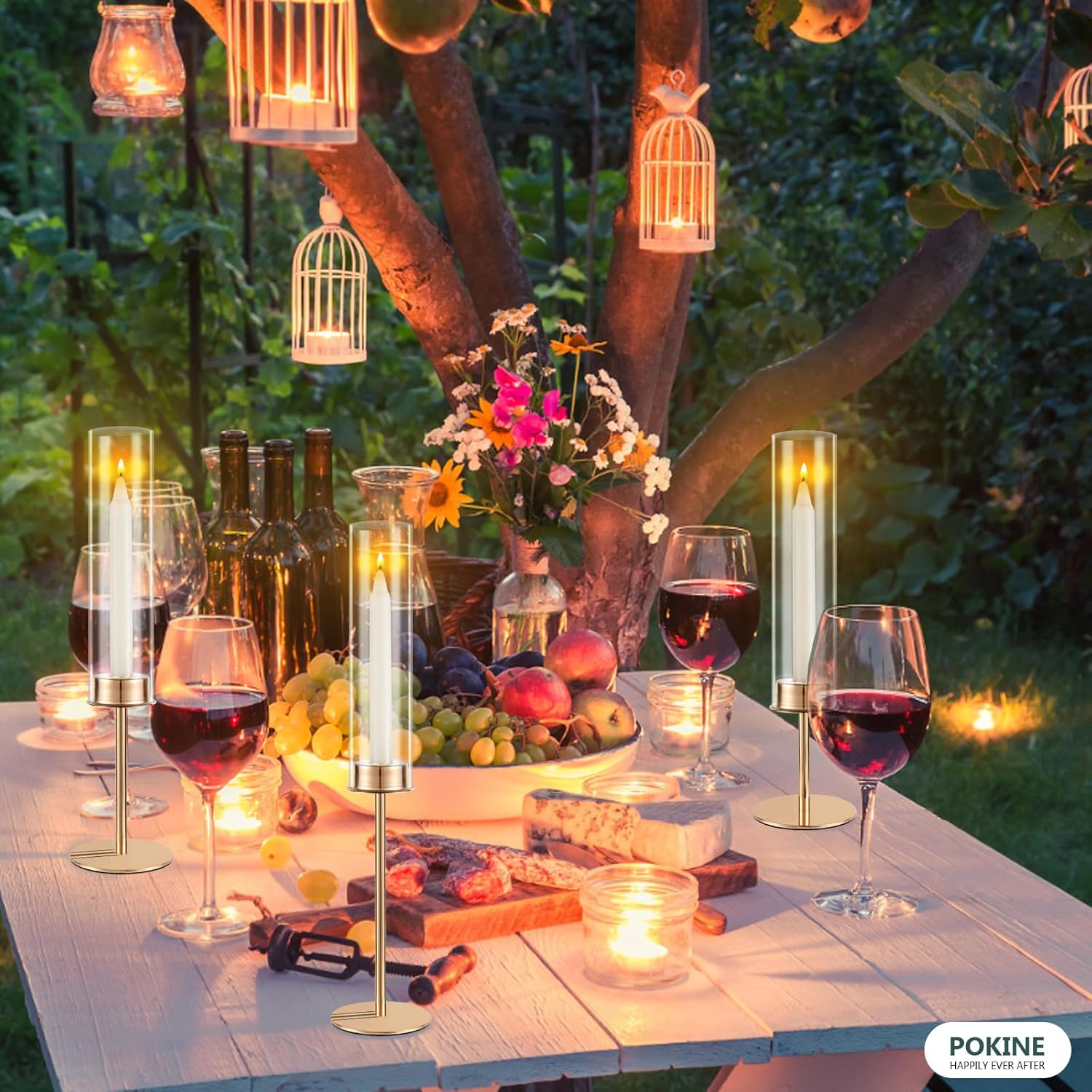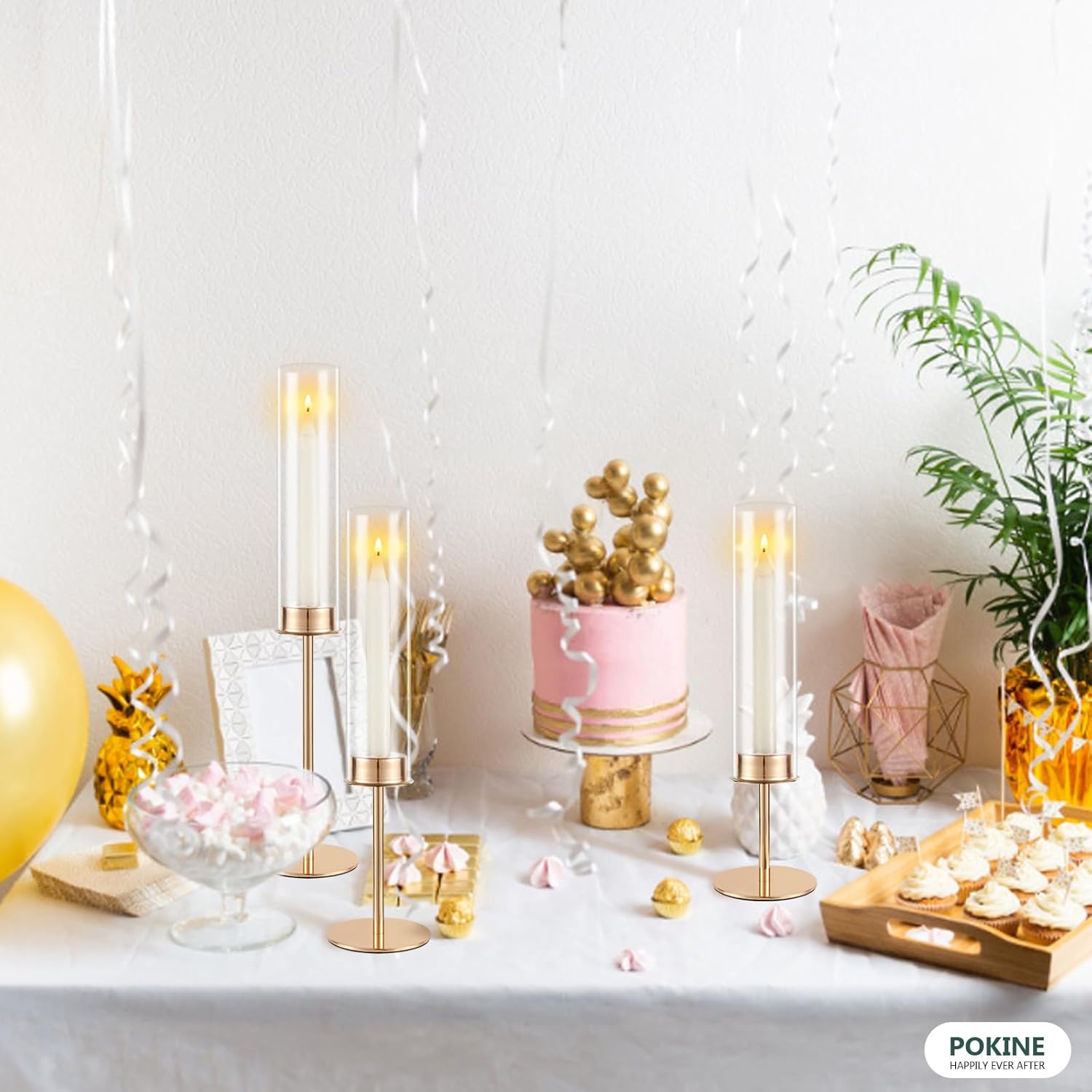 - Understated and Classic Glass Candlestick Holder: Chic gold candle holder matches well with removable thick hurricane cylinder.Different height candlesticks, The visual effect of the high and low undulating candlelight gives you a wonderful feeling.Add a more romantic atmosphere to your dates, parties, holiday celebrations and anniversaries.
