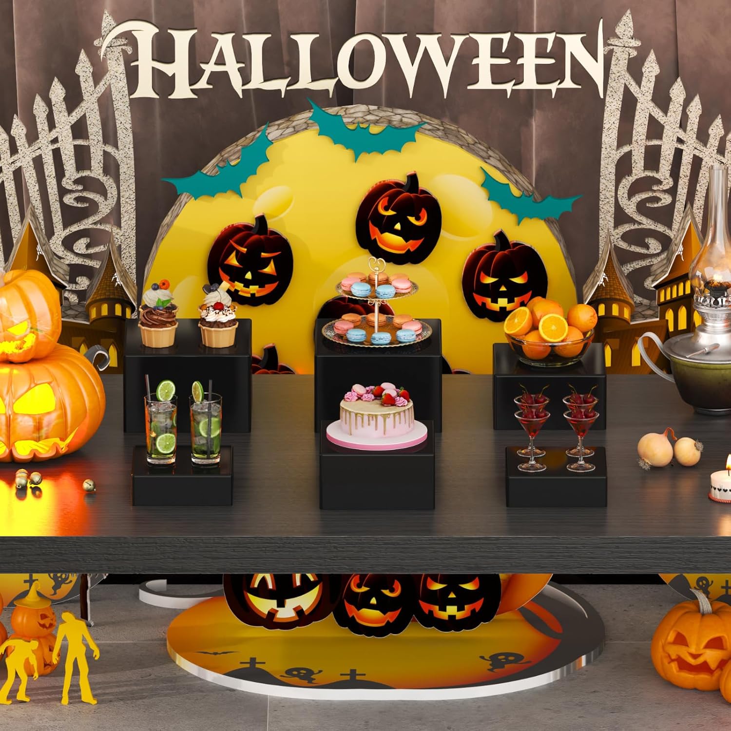 Lifewit Buffet Risers and Stands Up to 7.8", Food Risers for Buffet Table, Catering Dessert Cake Stand for Party, Collectibles Jewelry Display Stand, Black Cube Boxes Nesting Risers, 3 PCS