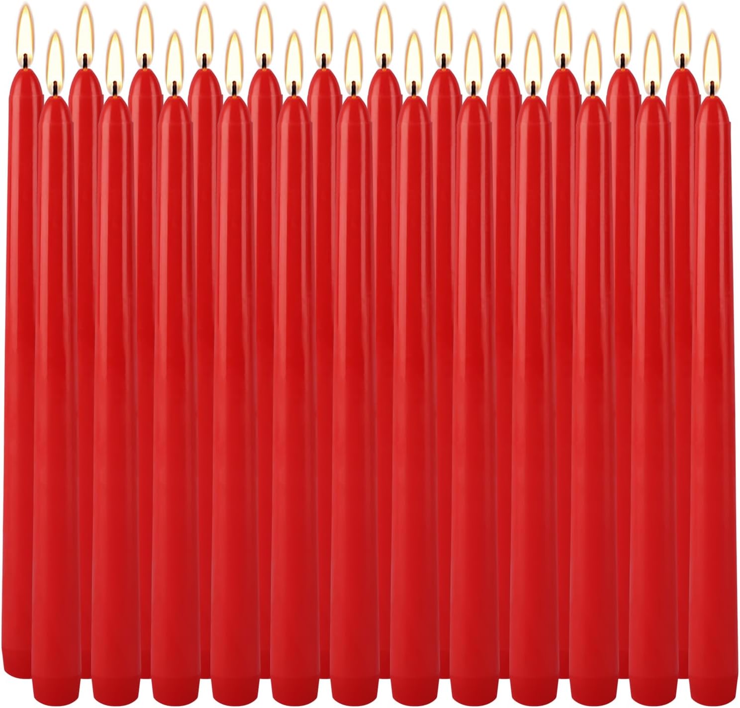 24 Pack Red Taper Candles, 7-8 Hours Burn Time, Unscented, Smokeless and Dripless, 0.75 x 10 Inch Dinner Candle Set for Christmas,Household, Wedding, Party and Home Décor Candlesticks