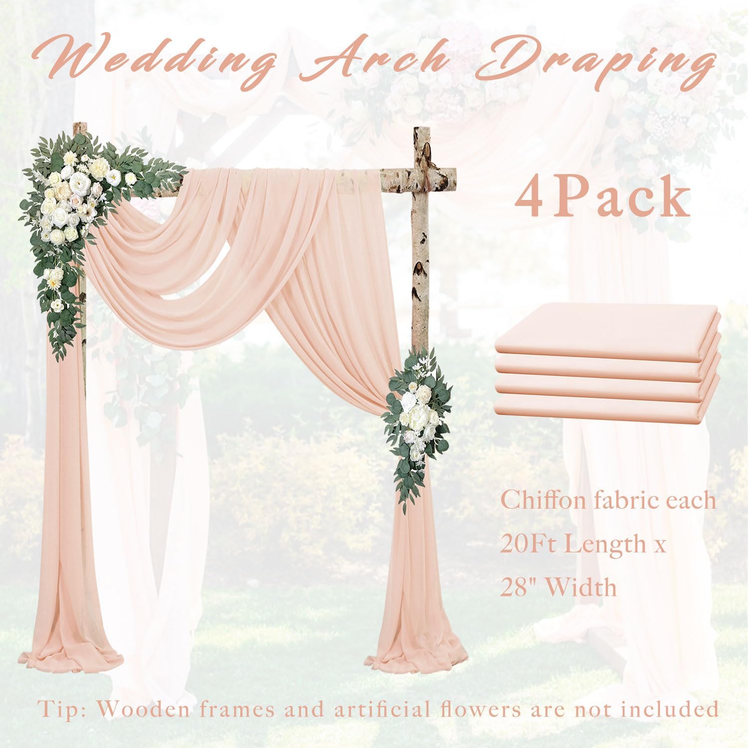 4 Panels 20Ft Length x 28" Width Light Peach Wedding Arch Draping Fabric Arch Drapes Chiffon Fabric Sheer Curtains Backdrop for Party Bridal Decorations Wedding Ceremony Ceiling Stage Reception Decor