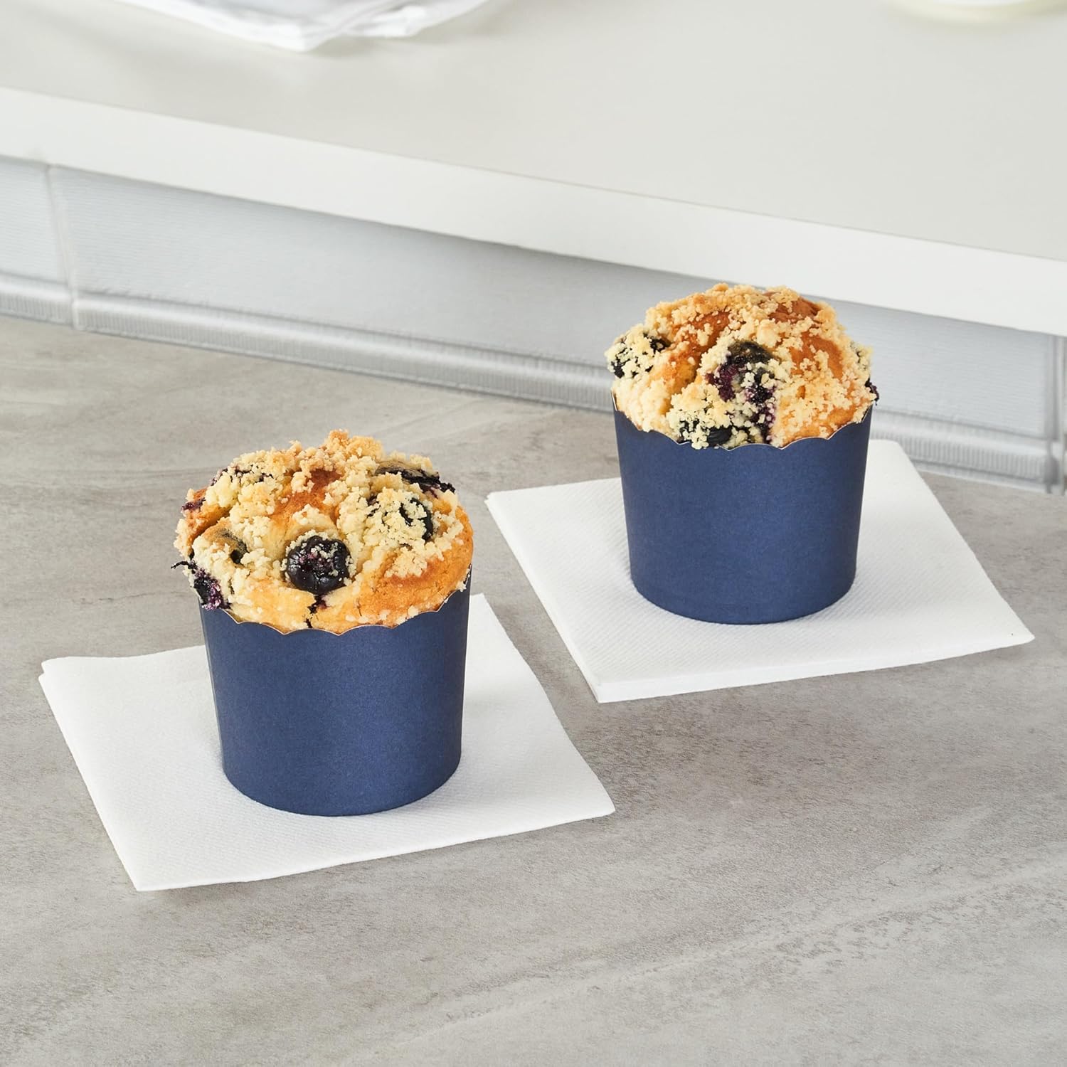 - SUSTAINABLE OPTION: Great for ecologically-conscious bakers! These disposable baking cups are made from sustainable paper and the midnight blue finish blends in with any type of cupcake decoration.