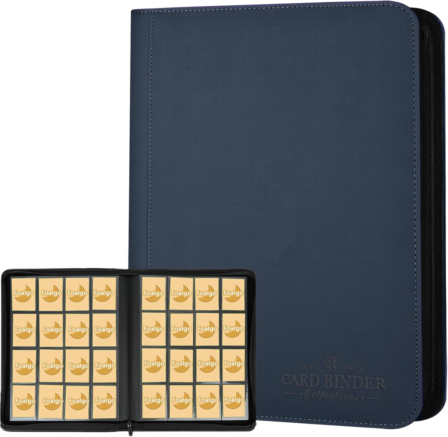 Trading Card Binder 16 Pocket, Foalgo PU Cover Card Binder for 1000+ Cards, Premium Trading Card Holder Folders, Double Sided Pocket Card Album for MTG, TCG (Blue)