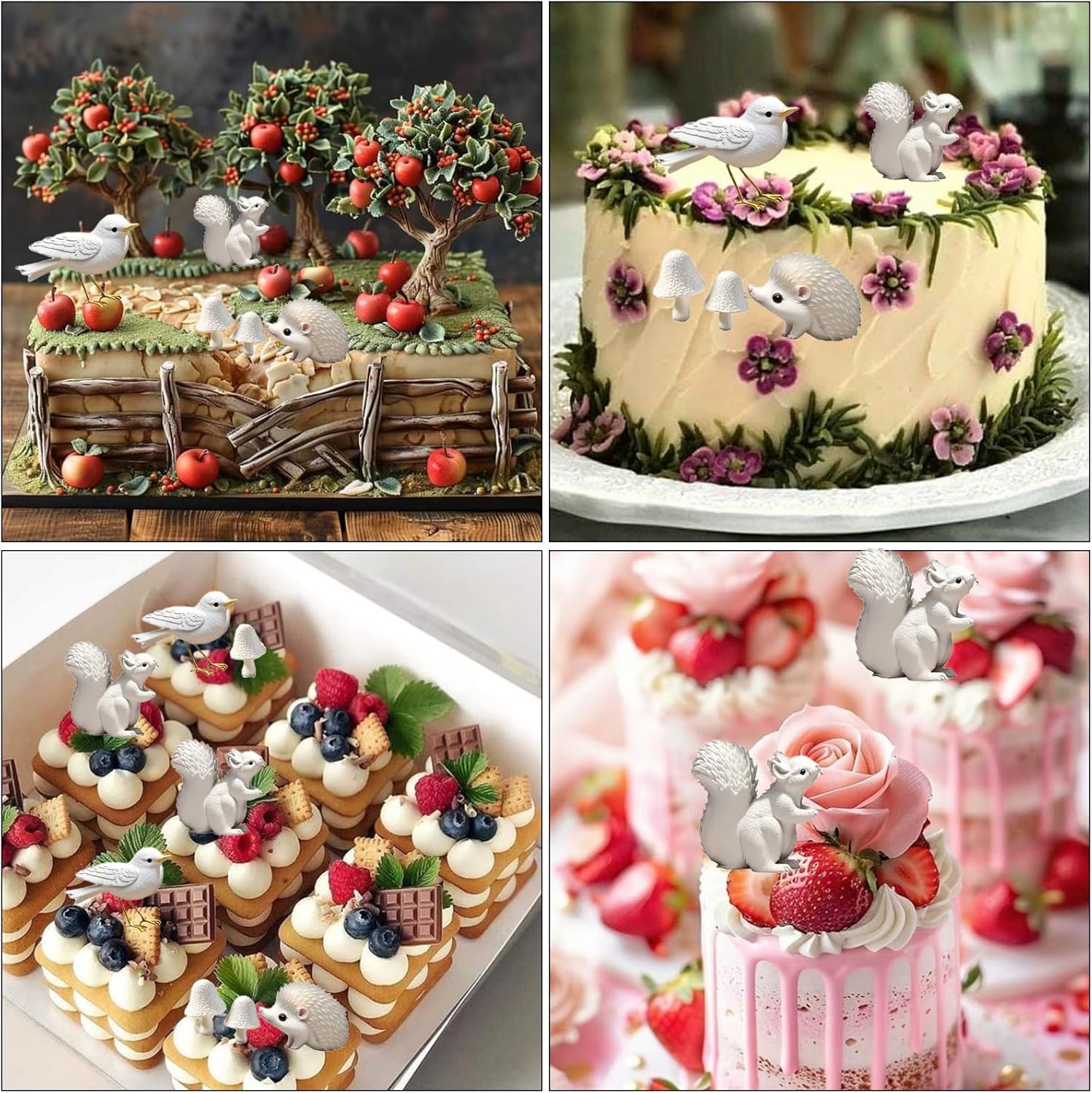 1Pcs Cute Hedgehog Squirrel Silicone Mold, Mushroom Leaf Chocolate Fondant Mold for Cake Decoration, Biscuits, Candy, Sugar Craft, Flower Paste, Clay, Resin Craft, Pendant, Home Decor