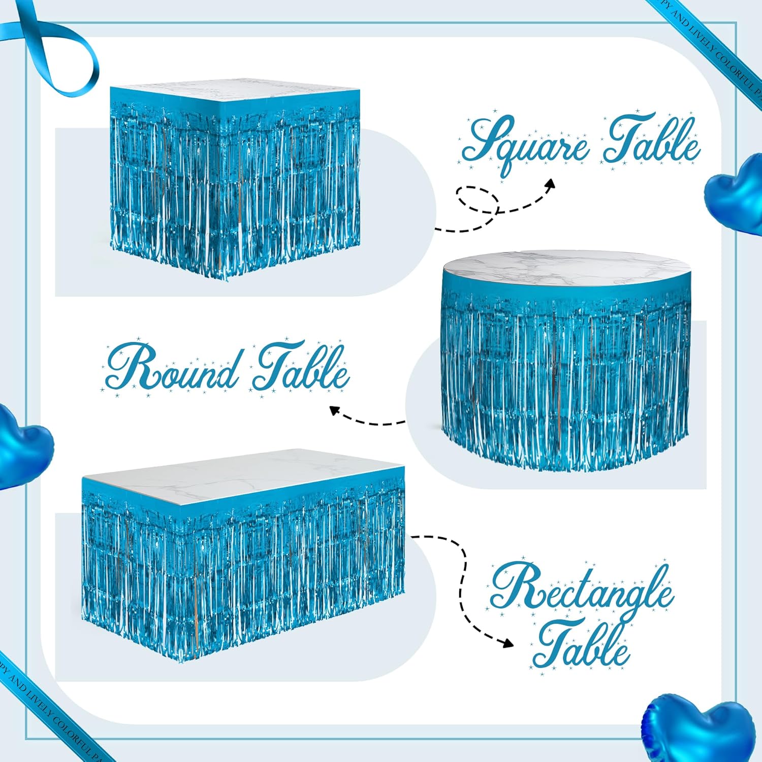 1 Pack Lake Blue Table Skirts, 29x108" Metallic Foil Tinsel Fringe Table Skirts for Rectangle Tables Streamer Curtains Backdrop, Party Decorations for Birthdays Weddings Holidays