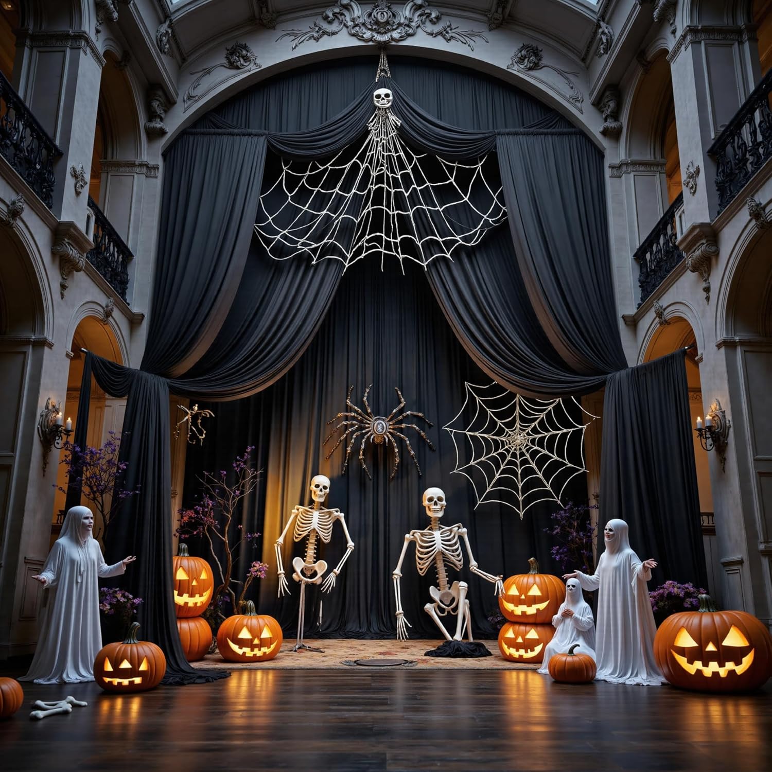 PartyVillage 50ft×15ft Black Backdrop Curtain for Halloween Parties, 10 Panels Wrinkle Free 15 FT Long Polyester Photo Backdrop Drapes Back Drop Cloth for Birthday Photography Background