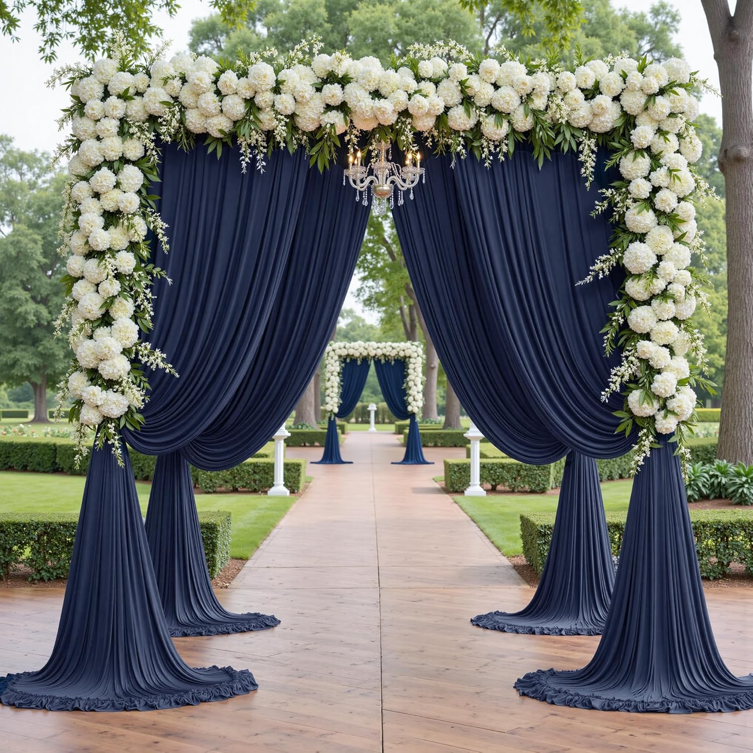 PartyVillage 20ft×15ft Navy Blue Backdrop Curtain for Wedding Parties, 4 Panels Wrinkle Free 15 FT Long Polyester Photo Backdrop Drapes Back Drop Cloth for Birthday Photography Background