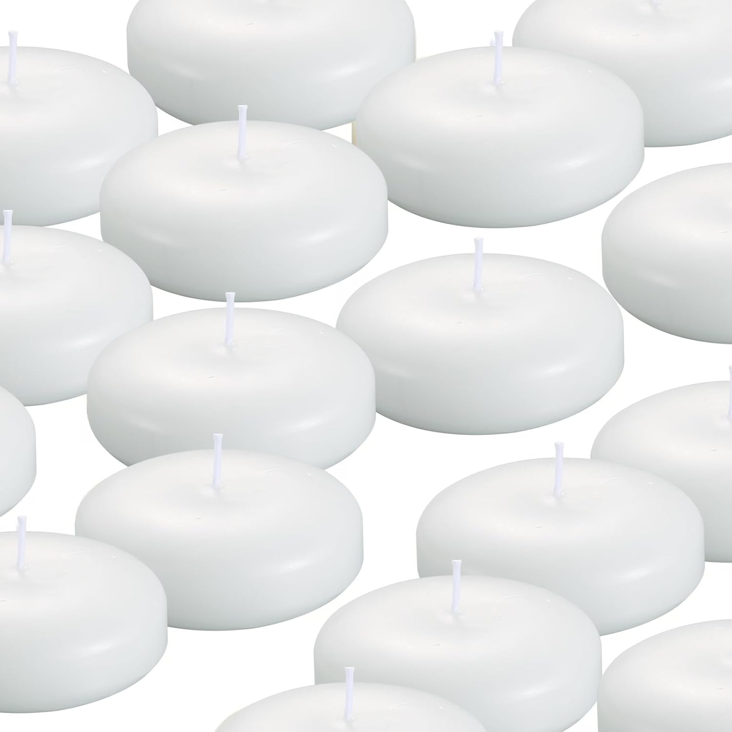 24 Pack Floating Candles, 3” White Unscented Dripless Wax Burning Candles, for Weddings, Party, Cylinder Vases, and Home Decorations