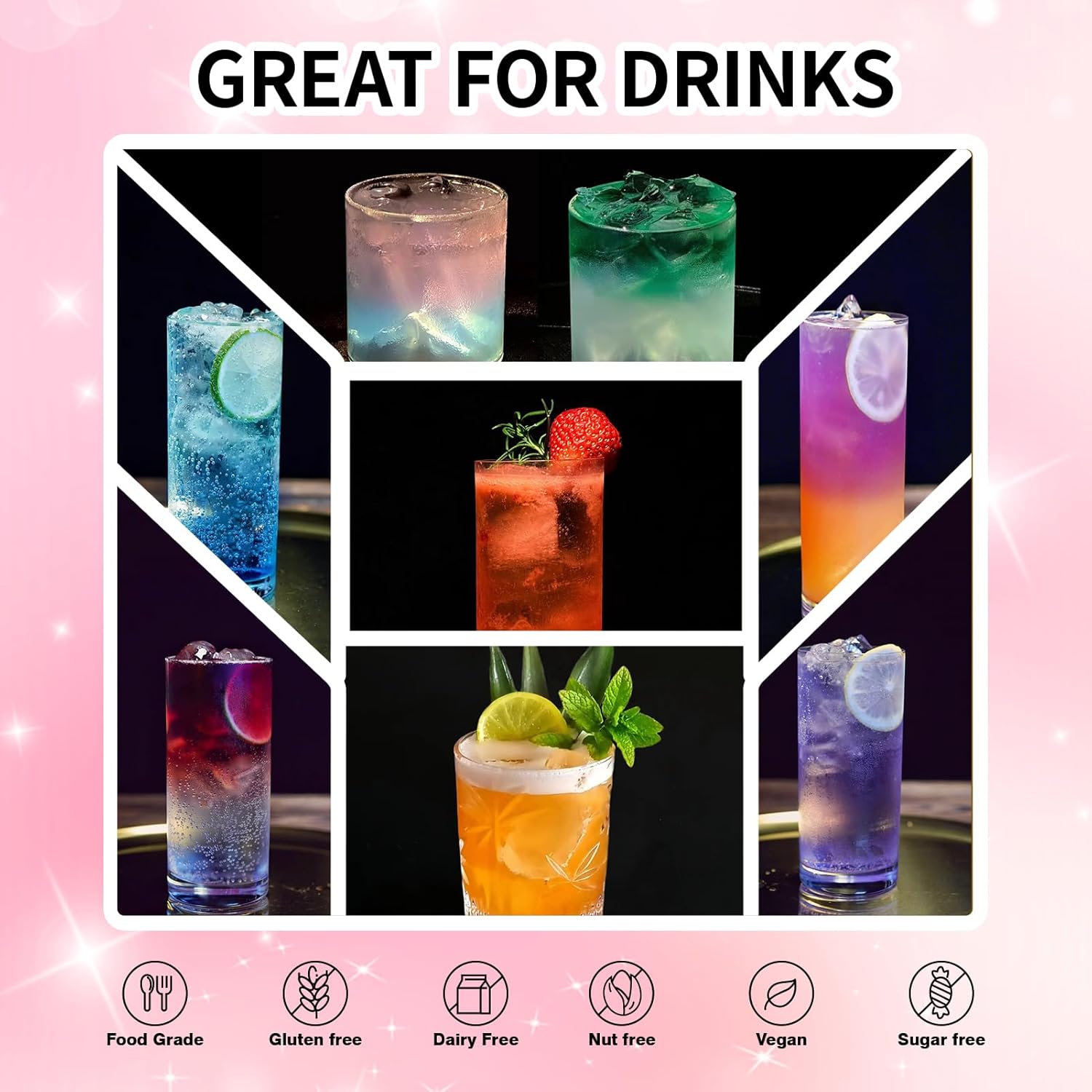 - Safe & Premium Food Grade Ingredients: Our premium drink glitter set adopt MSDS & food grade -certified ingredients, is safe, dairy-free, gluten-free, vegan, nut-free, and non-toxic.Additionally, our edible luster dust is tasteless and won't alter the original flavor of your food.Perfect for vegans, it adds the ideal finishing touch to your festive food