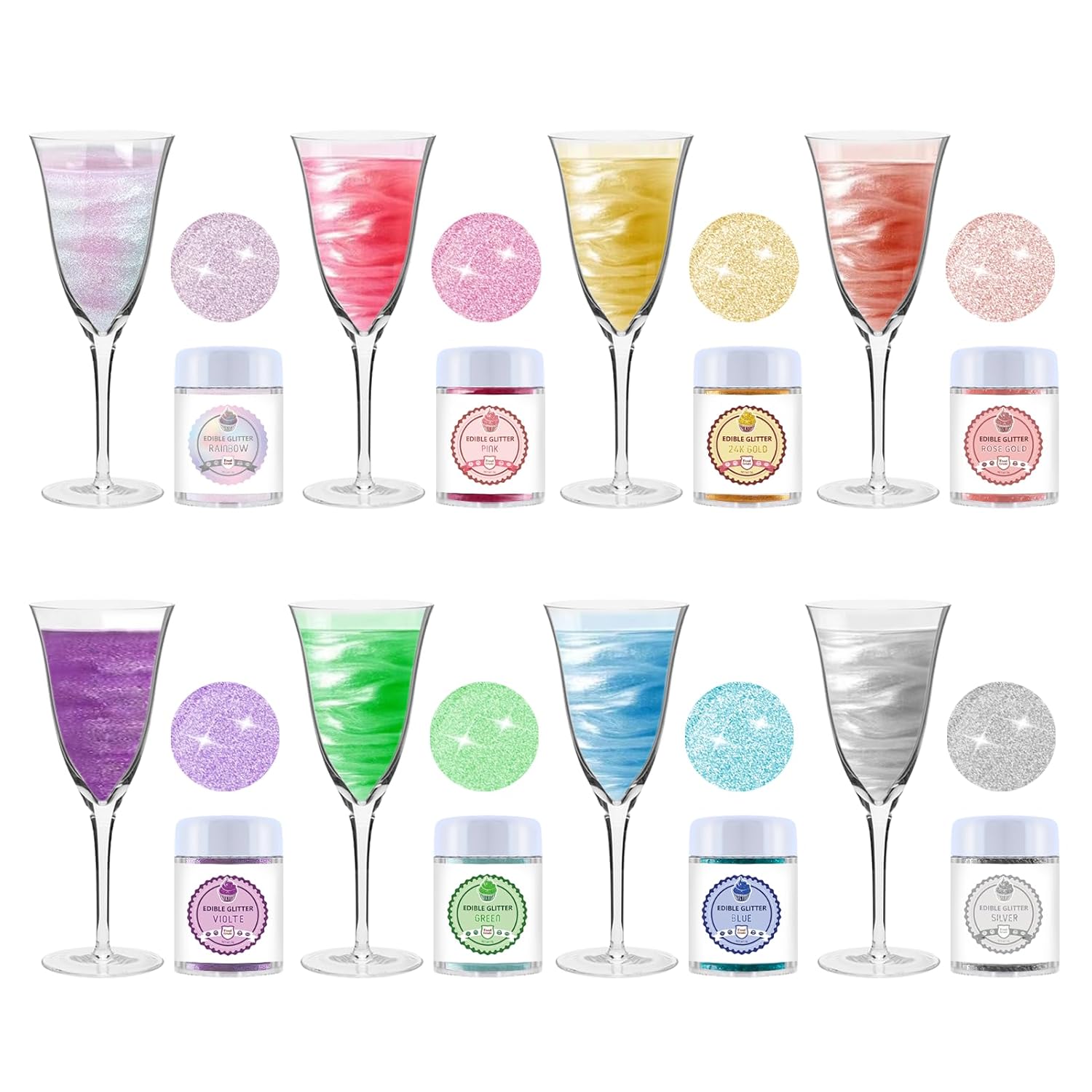 Edible Luster Dust 8 Colors Set - Edible Glitter for Cocktails, Rainbow Food Grade Powder Glitter for Drinks, Chocolate, Cake Decorating | Vegan, Sugar-Free, Gluten-Free -3g