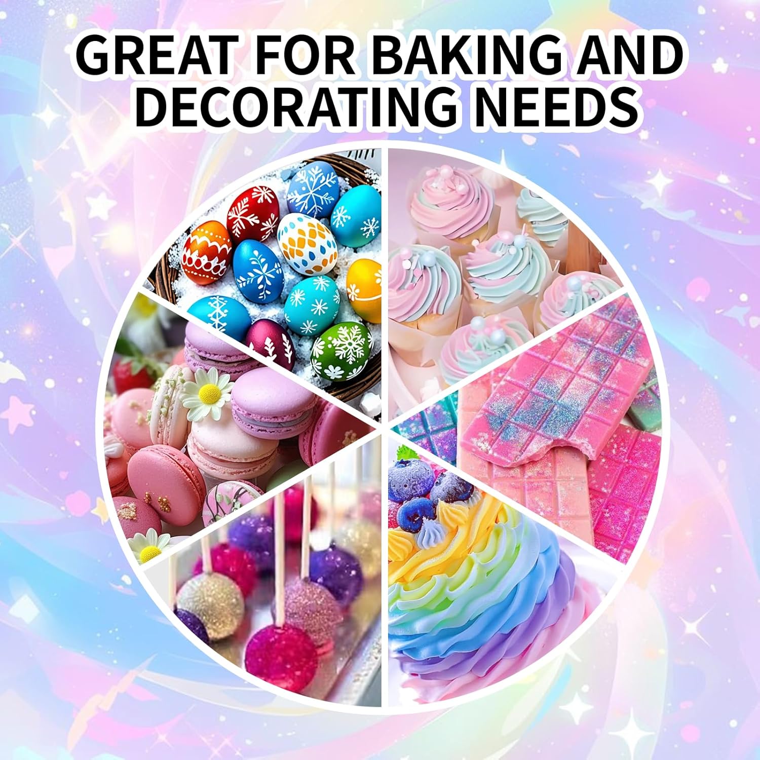 - Easy to Use: we upgrade the bottle design with leak proof lid,make it easy to control the powde. Simply sprinkle it directly into beverages to create starry drinks, or dust it over cakes for beautiful decorations. It can also be mixed with oil-based flavorings and applied using a brush for your DIY baking or desserts