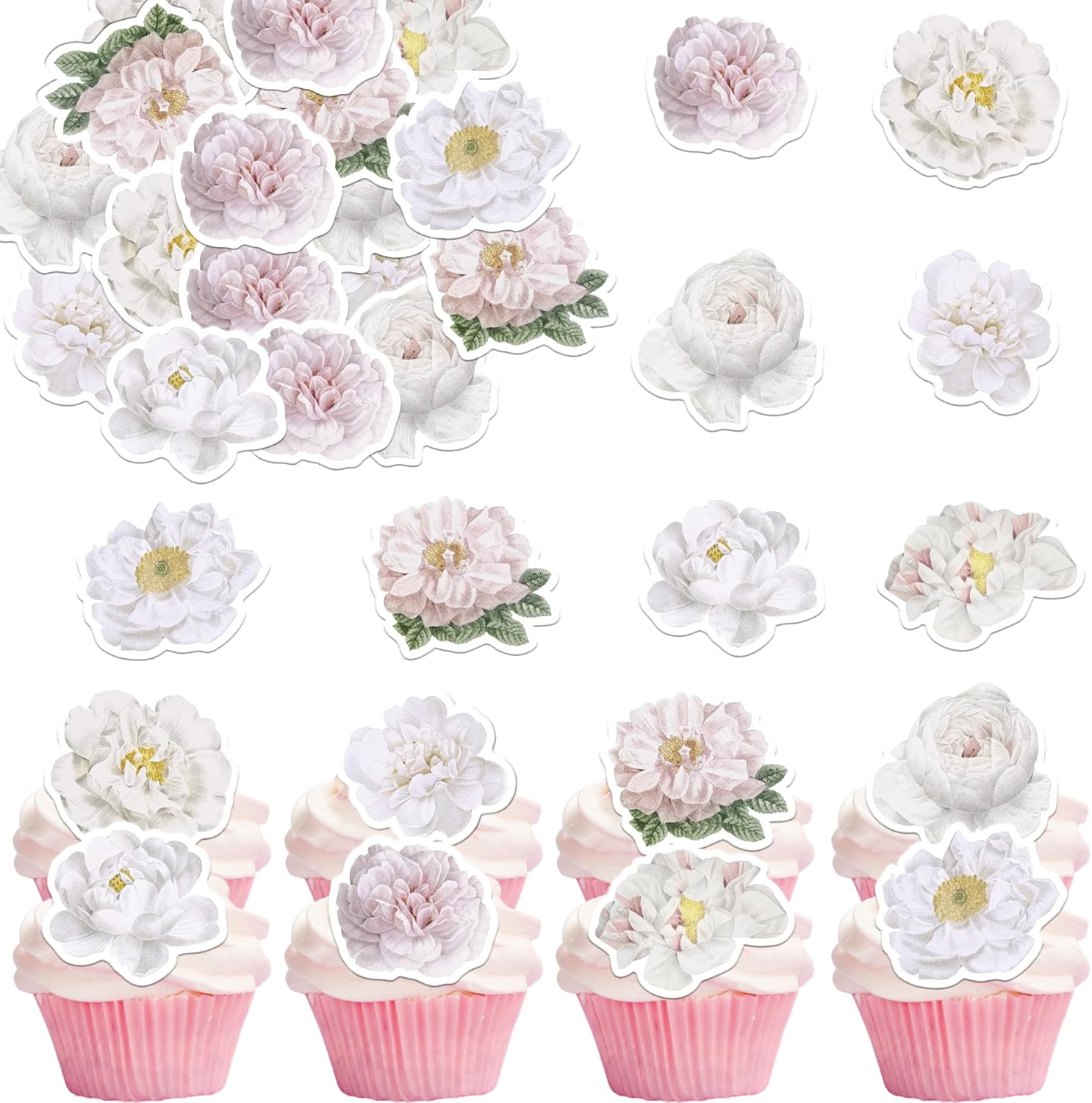 - Perfect for: This set of edible flowers Cupcake Toppers are suitable for happy tea party, bridal shower love theme party, anniversary party,baby shower party cake decoration,birthday and wedding engagement party cake decor. They can also be applied flat if desired. Safe to put them on cakes, cupcakes, ice cream, fruits, pie, dessert, cheese,brownies and will stand steady on the top