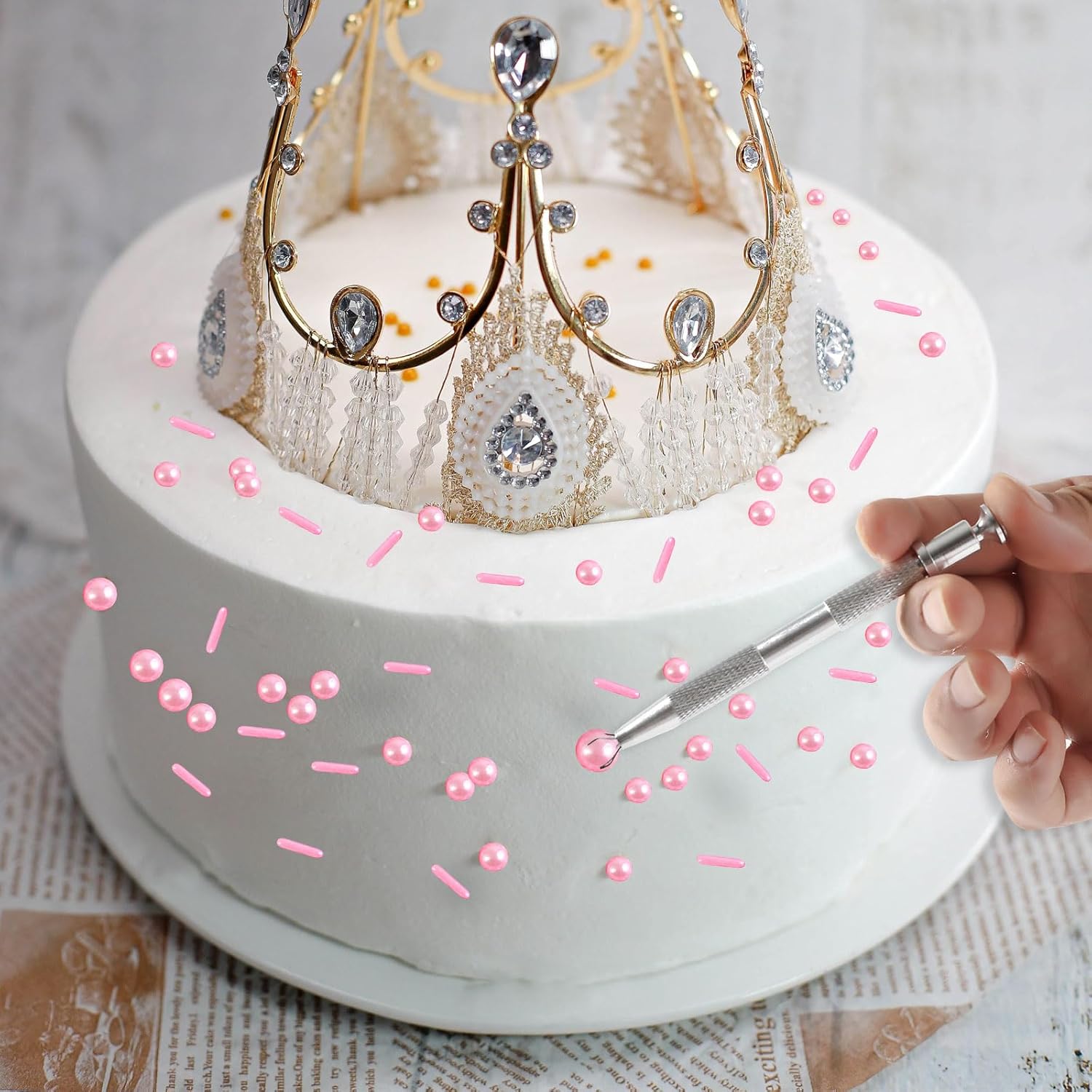 - 【Product List】: You will receive: 1 box of Pink cake sprinkles, 118g/4.16oz. 1 piece of pearl grabber. Sufficient quantity, convenient and practical, it can meet your daily needs well.