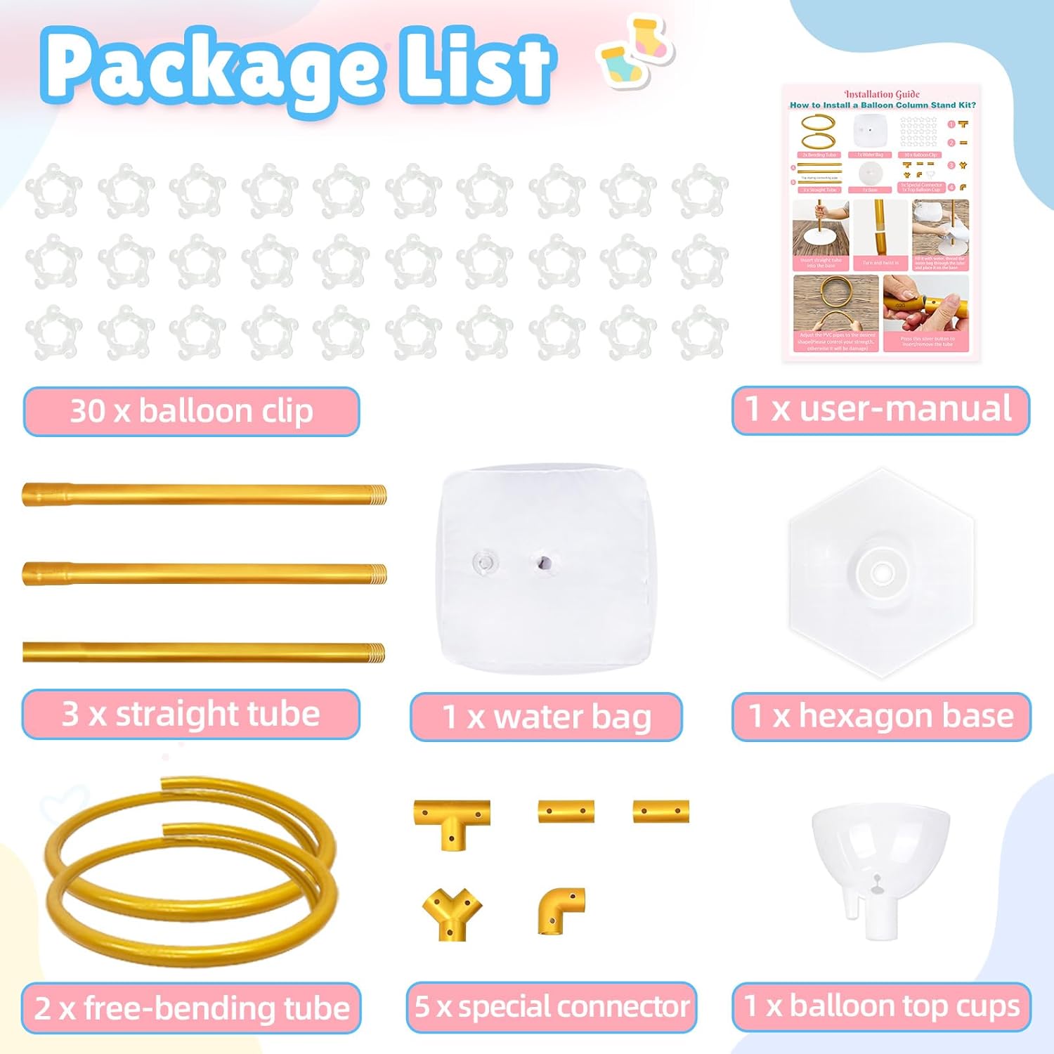 - Included Components : Base, Connecter, Balloon Clips