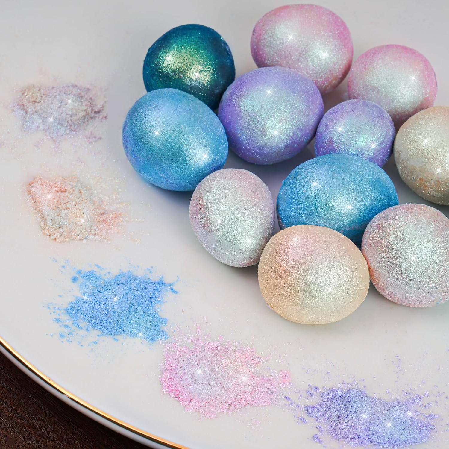 - 🌟【Easy to Use】Specially developed for food decoration and craft industries, this luster dust produces realistic looks by highly pigmented colors with a metallic finish. The pretty fine grain is more convenient for painting. To add glimmer and sparkle to your creations, simply sprinkle or dry brush the luster glitters on them. This product adheres very well to both wet and dry mediums. Attention: Seal and store glitter powder in a cool and dry place after use. Do not expose to excessive heat.