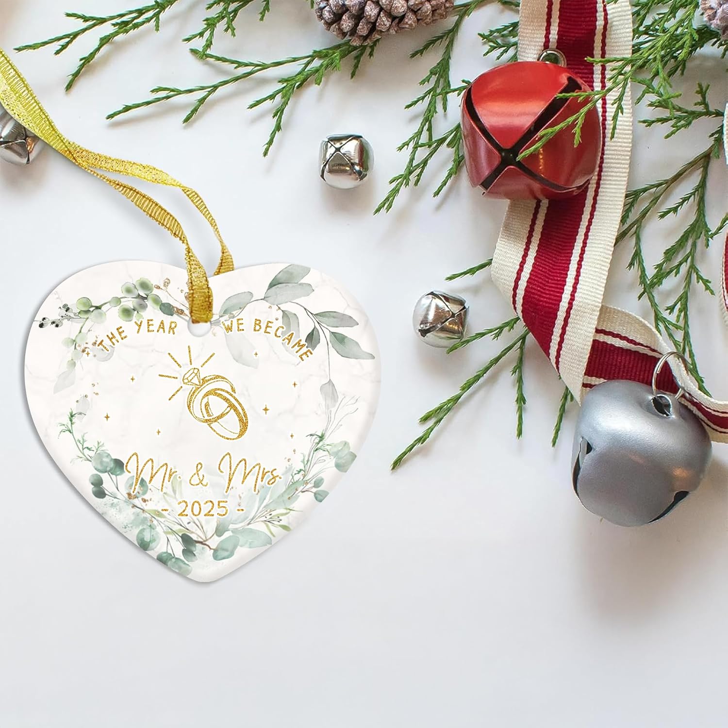 GOSSBY Wedding Ornament 2025 - The Year WE Became MR MRS - 2025 Wedding Gift for Couple - Bridal Shower, Newlywed, Just Married, Mr Mrs Gift for Bride Groom - 1st Married Couple Christmas Decor