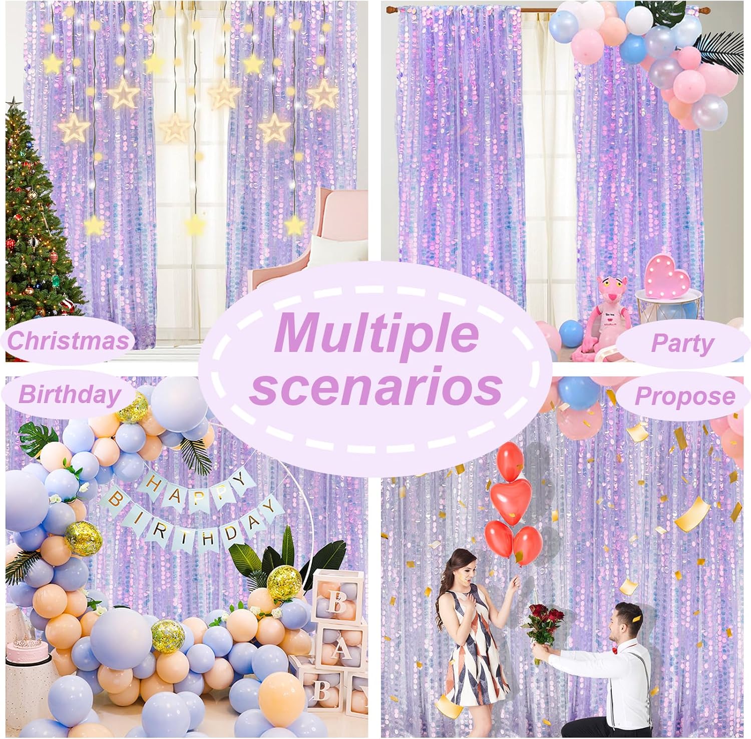 - Wide Use: glitter light purple sequin backdrops are perfect for birthdays, weddings, graduations, Christmas, Valentine's Day, portraits, photo booths, holiday decorations, home decorations and many other parties.