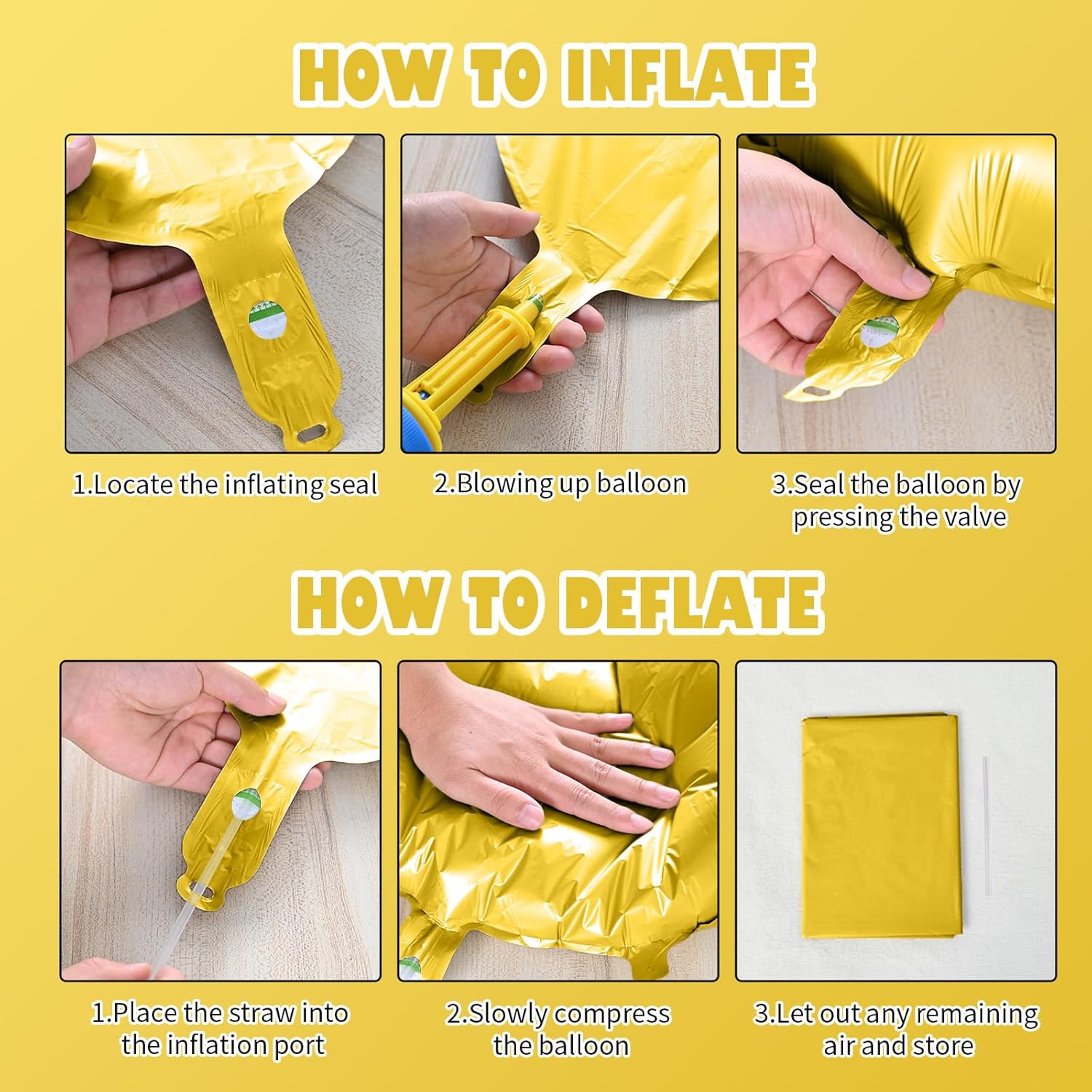 - Reusable Foil Balloons: The gold star balloon set is completely reusable. Avoid excessive friction and sharp objects when using it. Use a straw to deflate and flatten it after event, and it will still be a shining decoration at the party next time